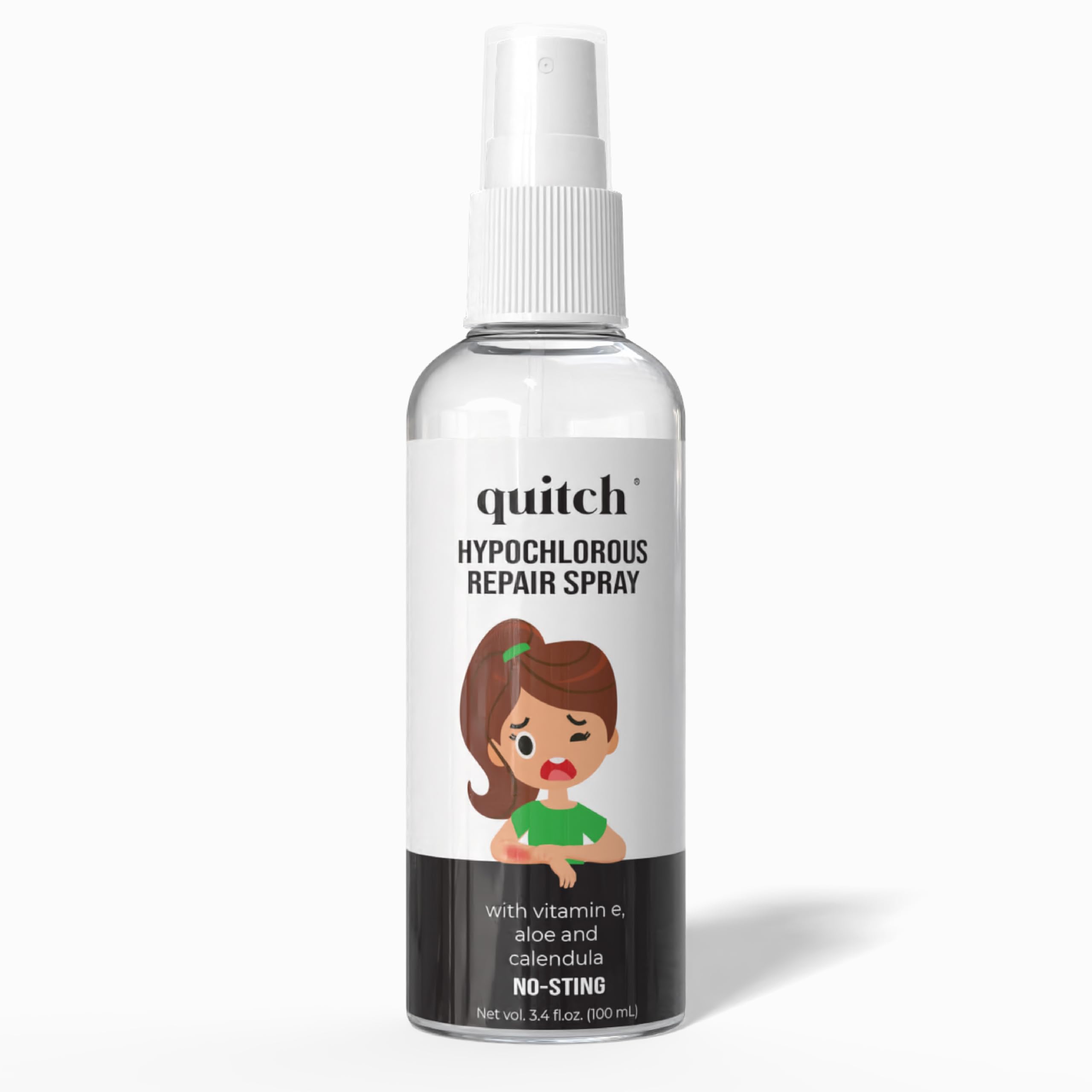 Quitch Hypochlorous Repair Spray is a gentle, non-stinging skin spray designed to support sensitive and eczema-prone skin. Powered by hypochlorous acid (HOCl) — a substance naturally produced by the body — this soothing formula helps cleanse irritated skin while supporting overall skin comfort. Ideal for daily use, Quitch helps calm the look of redness and discomfort associated with dryness, sensitivity, and environmental stressors. The lightweight mist applies evenly without rubbing, making it especially helpful for reactive skin or hard-to-reach areas. Formulated without fragrance, alcohol, or harsh preservatives, Quitch is gentle enough for the whole family. Whether used as part of a daily skincare routine or during periods when skin feels extra sensitive, this non-irritating spray supports clean, comfortable skin without disrupting the skin's natural barrier. Quitch Hypochlorous Repair Spray is suitable for sensitive skin types and can be used on arms, legs, and other external skin areas that need extra care.