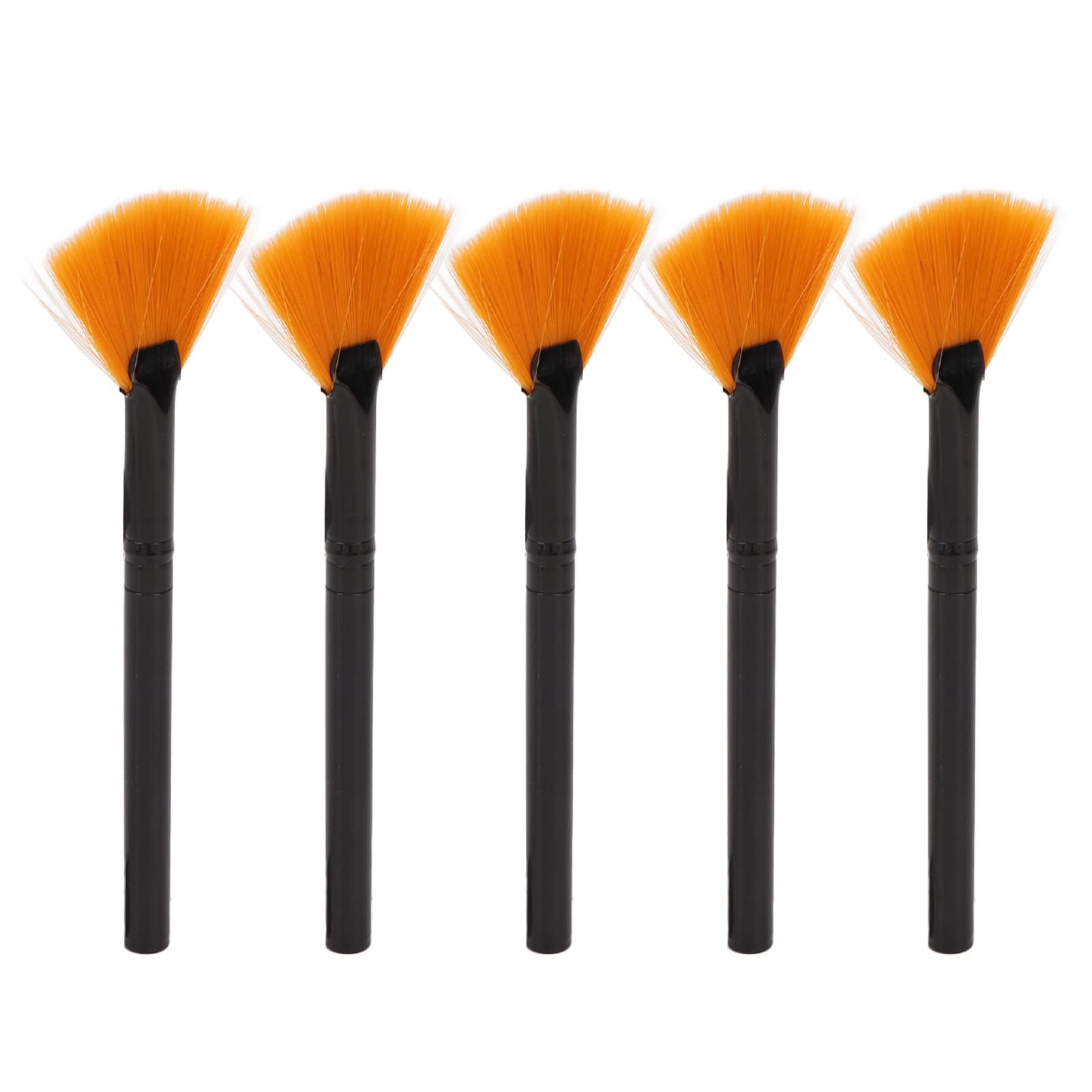 Qukaim Facial Fan Brush Fan Mask Brush Set of 5 Long Handle Facial Applicator Brushes for Mud Mask Blush Glycolic PeelSoft Makeup Tools