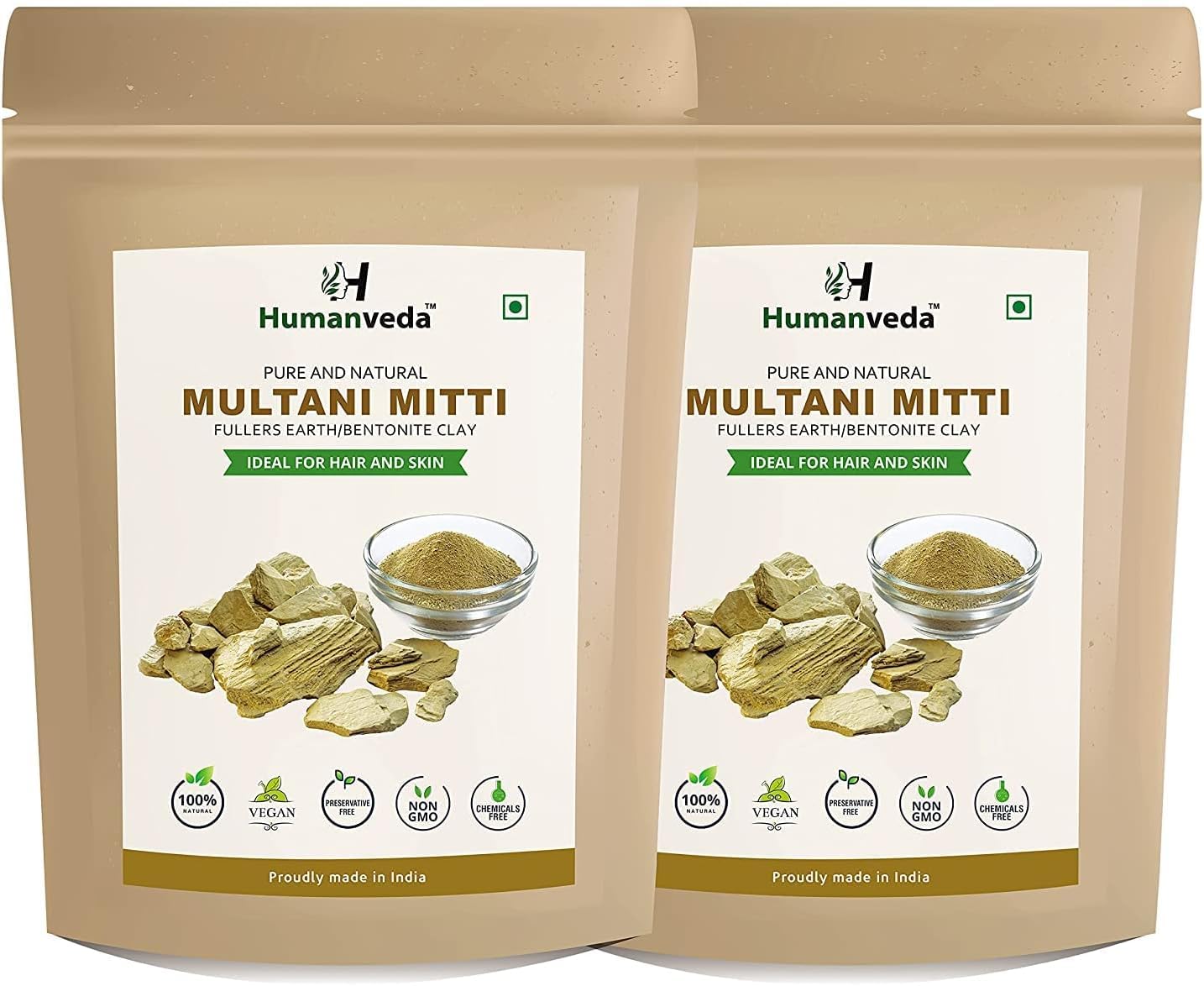 Multani mitti, or Fuller's Earth, is used as a natural cleanser and astringent, offering a host of benefits for the skin, including reducing oil and fighting acne. For centuries, Fuller's Earth, or Multani mitti, has been used as a quintessential Indian home remedy for clean, bright, and revitalized skin. It is a powerful healing clay with active ingredients that absorb impurities such as accumulated sebum, sweat, oil, and dirt from clogged pores. With its natural earthy aroma, it is one of the earliest substances used in beauty masks.Eliminates blackheads, acne, and dark circles: Multani Mitti cleanses and purifies the skin by removing oil, dirt, and impurities. Used as a scrub, Multani Mitti can remove dead skin cells and eliminate blackheads and whiteheads, giving the skin a natural, healthy glow. Instantly brighten your face: Humanveda Multani Mitti face powder is a safe and natural alternative to expensive chemical-based blemish removers and toner. It works on all types of blemishes and naturally brightens the skin. Controls excess oil and sebum: Multani Mitti is widely known for its use in beauty and skincare remedies. Primarily used in face packs to reduce oil and give the skin a healthy glow, this natural form of clay has several other uses for skin and hair. Continue reading to learn more about Humanveda Multani Mitti and how you can use it for your skin and hair! You definitely won't regret it. No additives, no preservatives, just powder: Humanveda Herbal Multani powder is made using a single ingredient sourced from nature. This single-ingredient Fuller's earth or bentonite clay contains no additives, preservatives, or chemicals, making it suitable for all skin types.QURA Poudre naturelle Multani Mitti pour le visage Terre de Fuller, argile bentonite (200 g x 2 400 g) Lot de 2DESCRIPTION DU PRODUIT Multani mitti ou terre de fuller est utilisé comme nettoyant naturel et astringent, offrant une foule d'avantages pour la peau, y compris : réduire le sébum. lutter contre l'acné. Depuis des siècles, Fuller's Earth, ou Multani Mitti a été utilisé comme un remède maison indien par excellence pour une peau propre, lumineuse et revitalisée. C'est une argile cicatrisante puissante avec des ingrédients actifs qui absorbent les impuretés telles que le sébum accumulé, la sueur, l'huile et la saleté des pores obstrués. Avec son arôme naturel de terre, c'est l'une des premières substances à être utilisée comme masque de beauté.Élimine les points noirs, l'acné et les cernes : Multani mitti nettoie et purifie la peau en éliminant l'huile, la saleté et les impuretés. Utilisé comme gommage, Multani Mitti peut éliminer les cellules mortes de la peau et éliminer les points noirs et les points blancs, donnant à la peau un éclat naturel et sain. Faites briller instantanément votre visage : la poudre Humanveda Multani Mitti pour le visage est une alternative sûre et naturelle aux agents anti-imperfections coûteux à base de produits chimiques et au toner. Il agit sur tous les types de imperfections et éclaircit la peau naturellement. Contrôle l'excès d'huile et de sébum : Multani Mitti est largement connu pour son utilisation dans les remèdes de beauté et de soins de la peau. Principalement multani mitti face packs pour réduire le gras et donner un éclat sain à la peau, cette forme naturelle d'argile a plusieurs autres utilisations pour la peau et les cheveux. Continuez et lisez la suite pour en savoir plus sur Humanveda multani mitti et comment vous pouvez l'utiliser pour votre peau et vos cheveux! Vous ne le regretterez pas à coup sûr. Sans additifs, sans conservateur, uniquement en poudre MULTANI MITTI : la poudre Humanveda Herbal Multani est fabriquée en utilisant un seul ingrédient provenant de la nature. Cette terre de Fuller ou argile bentonite à ingrédient unique ne contient pas d'additifs, de conservateurs ou de produits chimiques, ce qui la rend adaptée à tous les types de peau.