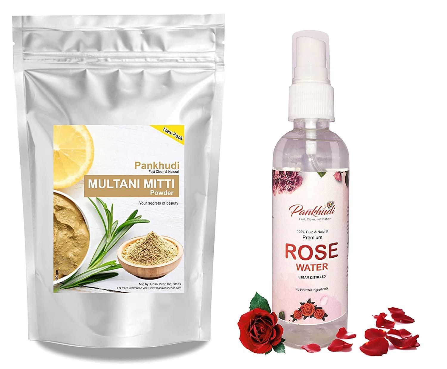 Our rose water contains no chemicals, no preservatives, and certainly no artificial fragrance. The pure scent of organic roses is dispersed through the easy-to-use rose spray. Pankhudi rose water is a worthy addition to your daily skincare routine. The Multani Mitti hair pack helps condition your hair, leaving it smooth and silky. Multani clay is commonly known for its use in beauty and skincare treatments. First and foremost, the HerbtonyQ Multani Mitti pack helps reduce oiliness and provides a healthy glow to the skin this natural form of clay has many other uses for skin and hair. Pure and natural rose water.