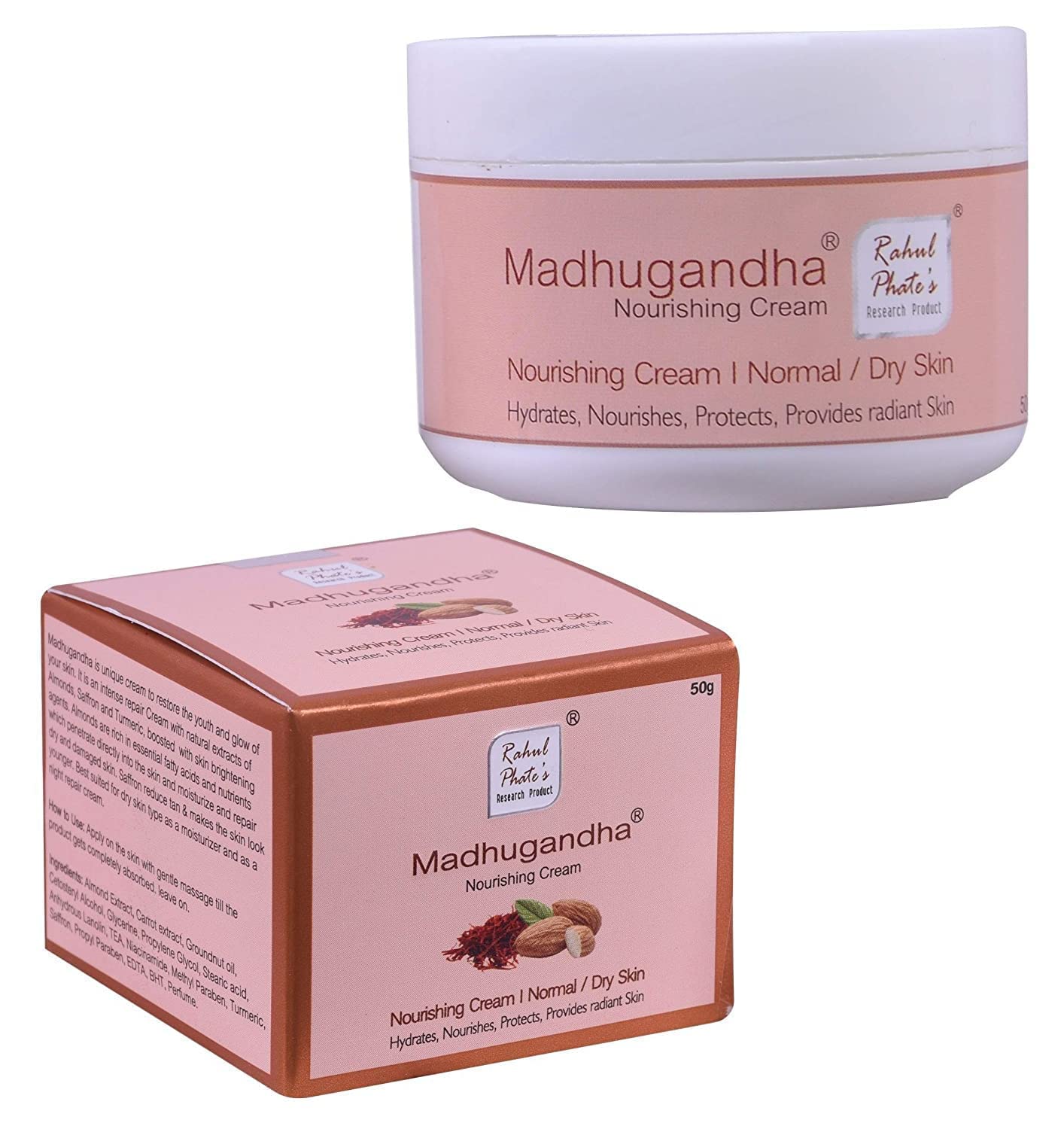 A unique concept in traditional Indian beauty care, meticulously and scientifically designed to make you perfectly beautiful. This is a remarkable product in the beauty industry. Almond milk is extracted and processed with carrot, saffron, and turmeric extracts, then this concentrated milk is transformed into a nourishing cream. The most natural form of cosmetic formulation for optimal results. Nourishes the skin, improves the skin's protein system, and provides an even complexion. It offers enhanced hydration and a firming effect, as well as reducing tanning, resulting in a smooth, even skin tone and a beautiful appearance. This cream is essential for anyone with dry skin, men, women, and even children. Applying it twice a day will provide the many benefits you deserve to be beautiful. This nourishing cream is the first revolutionary concept of concentrated almond milk blended with carrot juice and saffron. The enriched cream revitalizes the skin, leaving it radiant and luminous. In addition, saffron is widely used in cosmetic products that reduce tanning.Rahul Phate Nourishing Cream, with its natural benefits and gentle skin-nourishing base, is the best support available for mature skin. Rahul Phate Nourishing Cream – Saffron and Almond Extract with Natural Vitamin E – is suitable for dry to normal skin, for men and women, and for mature skin. This softening cream provides fine lines and has a brightening effect. It features a revolutionary concept combining concentrated almond milk with carrot juice. This blend is treated with turmeric extract for its antioxidant properties and beautifully formulated into a cream with skin-friendly ingredients. Its nourishing properties and skin-brightening agents make it ideal for the entire face. How to use: For facial massage, apply a teaspoonful to pre-cleansed or exfoliated skin. The natural oils and enriched almond nourishment strengthen the dermis and increase its ability to produce elastin and collagen. Rahul Phate Nourishing Cream contains concentrated almond milk, which rejuvenates and refreshes the skin, leaving it soft and radiant. It is also rich in antioxidants that help prevent wrinkles and fine lines and protect against free radicals. The almond milk gently cleanses the skin, leaving it smooth and nourished.QURA Rahul Phate's Research Products Crème nourrissante pour le visage pour une peau éclatante et hydratée, lisse et jeune, pour tous les types de peau, pour homme et femme, 50 gDESCRIPTION DU PRODUIT Concept unique de soin de beauté indien traditionnel soigneusement conçu de manière scientifique pour vous rendre parfaitement belle. est un produit remarquable dans l'industrie de la beauté. Le lait d'amande est extrait et traité avec les extraits de carotte, safran, curcuma, puis ce lait concentré est converti en une crème nourrissante. La forme la plus naturelle de formulation cosmétique pour de meilleurs résultats. Nourrit la peau, améliore le système de protéines de la peau et donne un teint approprié. Une meilleure hydratation et un effet raffermissant ainsi que la réduction du bronzage, offrant une peau uniforme et une belle apparence. est une crème nécessaire pour chaque personne ayant la peau sèche, homme, femme et même très bénéfique pour les enfants. Une application deux fois par jour vous fournira de nombreux avantages que vous méritez pour être belle. La crème nourrissante est le premier concept révolutionnaire de lait concentré d'amande mélangé avec du jus de carotte et du safran. . La crème enrichie donne vie à la peau et la rend radieuse et lumineuse. En outre, le safran est largement utilisé dans les produits cosmétiques réduisant le bronzage.La crème nourrissante Rahul Phate avec ses bienfaits naturels en base de crème douce pour la peau est le meilleur soutien disponible pour rendre la peau mature. Rahul Phate Crème nourrissante - Extrait de safran et d'amande à la vitamine E naturelle, pour peaux sèches à normales pour homme - femme, peau mature, crème adoucissante aux lignes fines avec action éclaircissante. C'est le premier concept révolutionnaire de lait concentré d'amande mélangé avec du jus de carottes. Ce mélange est traité avec des extraits de curcuma pour ses propriétés antioxydantes et joliment formulé en crème avec des ingrédients respectueux de la peau. La nutrition avec facteurs éclaircissants la peau le rend spécial pour l'ensemble du visage. Méthode d'utilisation : pour le massage du visage, appliquez une cuillère à café sur la peau pré-nettoyée ou pelée. Les huiles naturelles et la nutrition enrichie d'amande renforcent le derme et augmentent sa capacité à produire de l'élastine et du collagène. La crème nourrissante Rahul Phate contient du lait d'amande concentré, qui rajeunit et rafraîchit la peau et la maintient douce et lumineuse. Il est également plein d'antioxydants qui préviennent les rides et les ridules et protègent notre peau contre les radicaux libres. Le lait d'amande nettoie la peau en douceur et la rend lisse et nourrie.