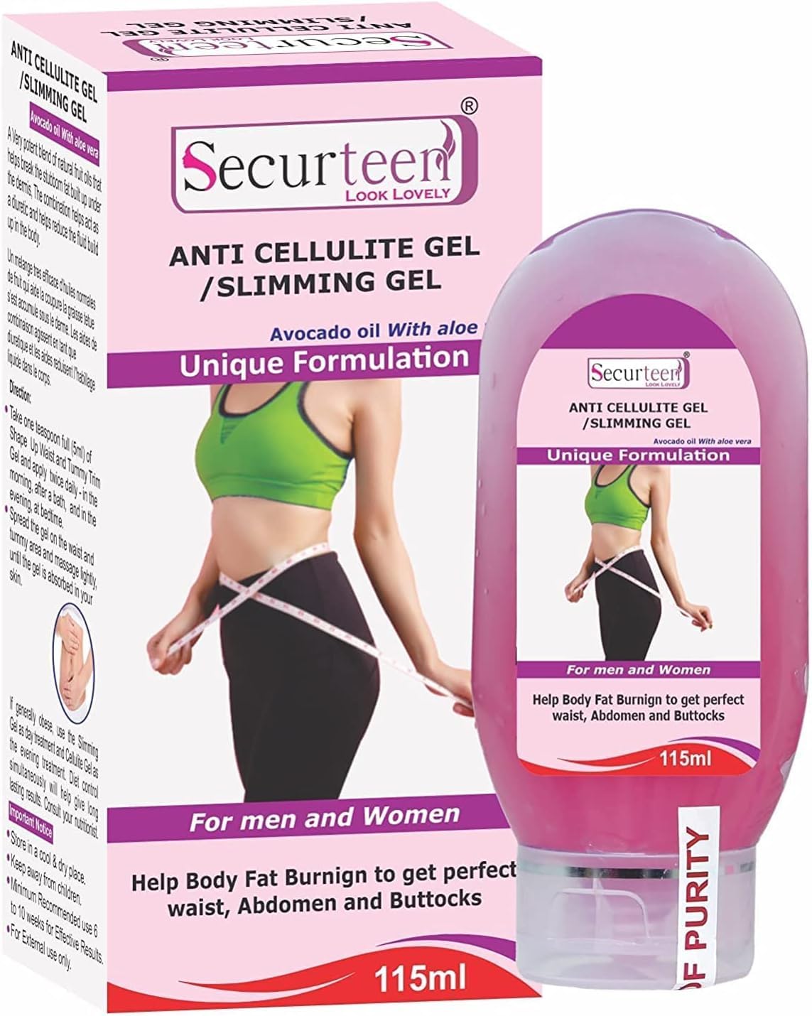 QURA Gel amincissant pour le ventre, les hanches, les cuisses, le corps, anti-cellulite et raffermissement de la peau, 115 ml