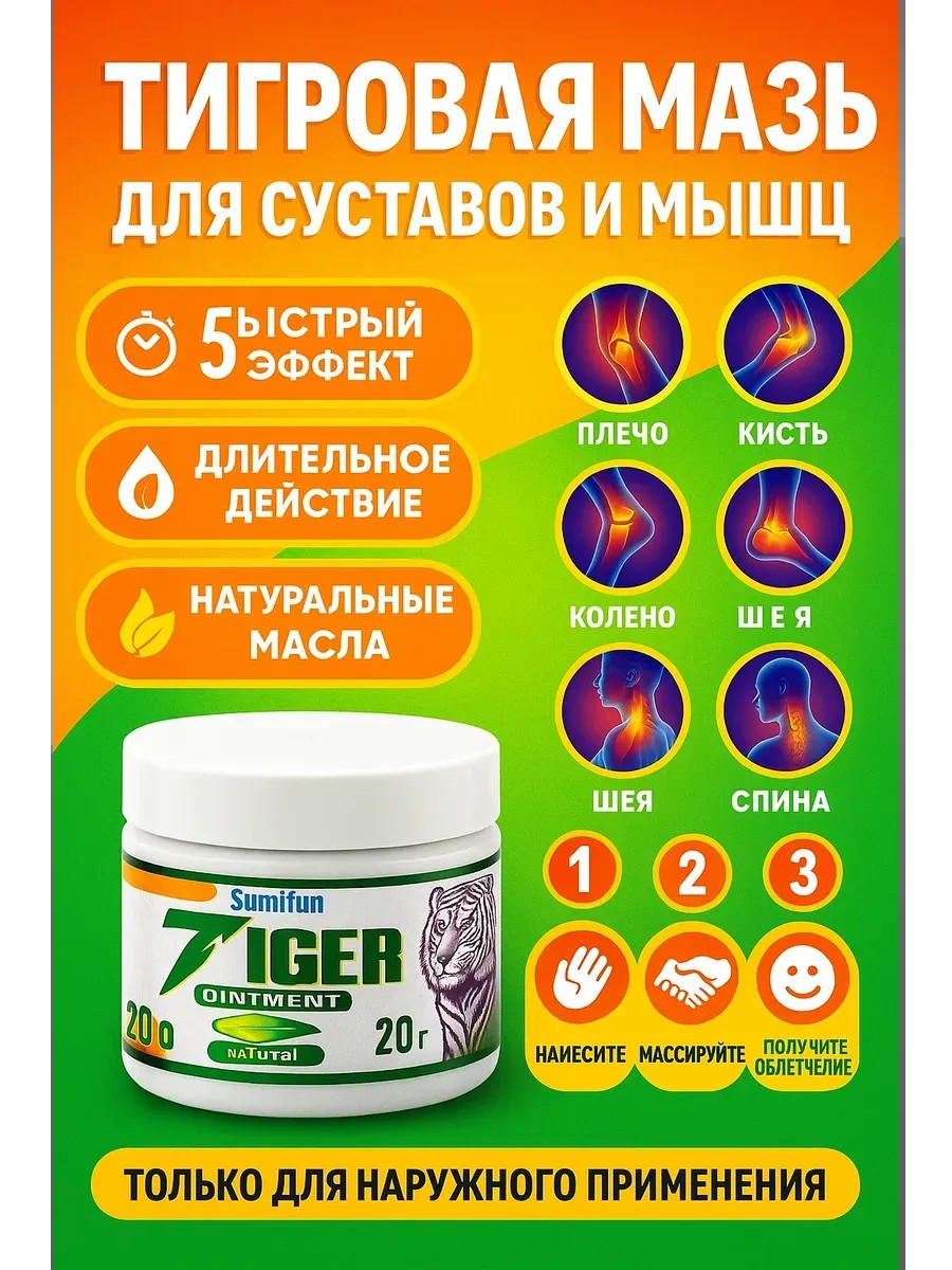 Sumifun Tiger Ointment — “тигровая” мазь для суставов и мышц, 20 г