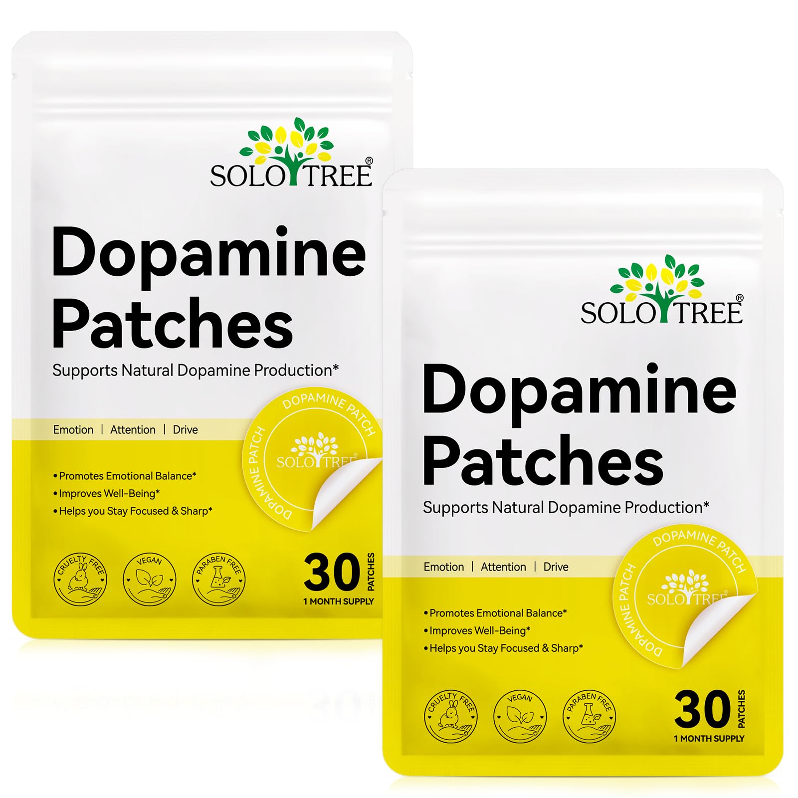 Daily Use: Each pack includes 30 dopamine patches, offering a full month of steady mood and focus support. Replace after 8 hours of wear. For best results, use daily. Easy To Use: Simply apply one patch to clean, dry skin for all-day support. Its water-resistant and discreet design makes it perfect for wear at work, during exercise, or while traveling. Plant-Based Formula: Made with plant-based materials, our patches are vegan, cruelty-free, and free from common irritants for a natural approach to wellness. Dopamine Patches: Our Dopamine Patches are designed to support daily mental wellness by helping maintain a balanced emotional state and enhance mental clarity. These easy-to-use patches seamlessly integrate into your self-care routine, offering gentle yet effective support for a positive outlook and reduced stress throughout the day—whether at work, home, or travel. Promote Positive Mood: These patches are designed to be a gentle addition to your daily self-care routine, helping to promote a sense of well-being.