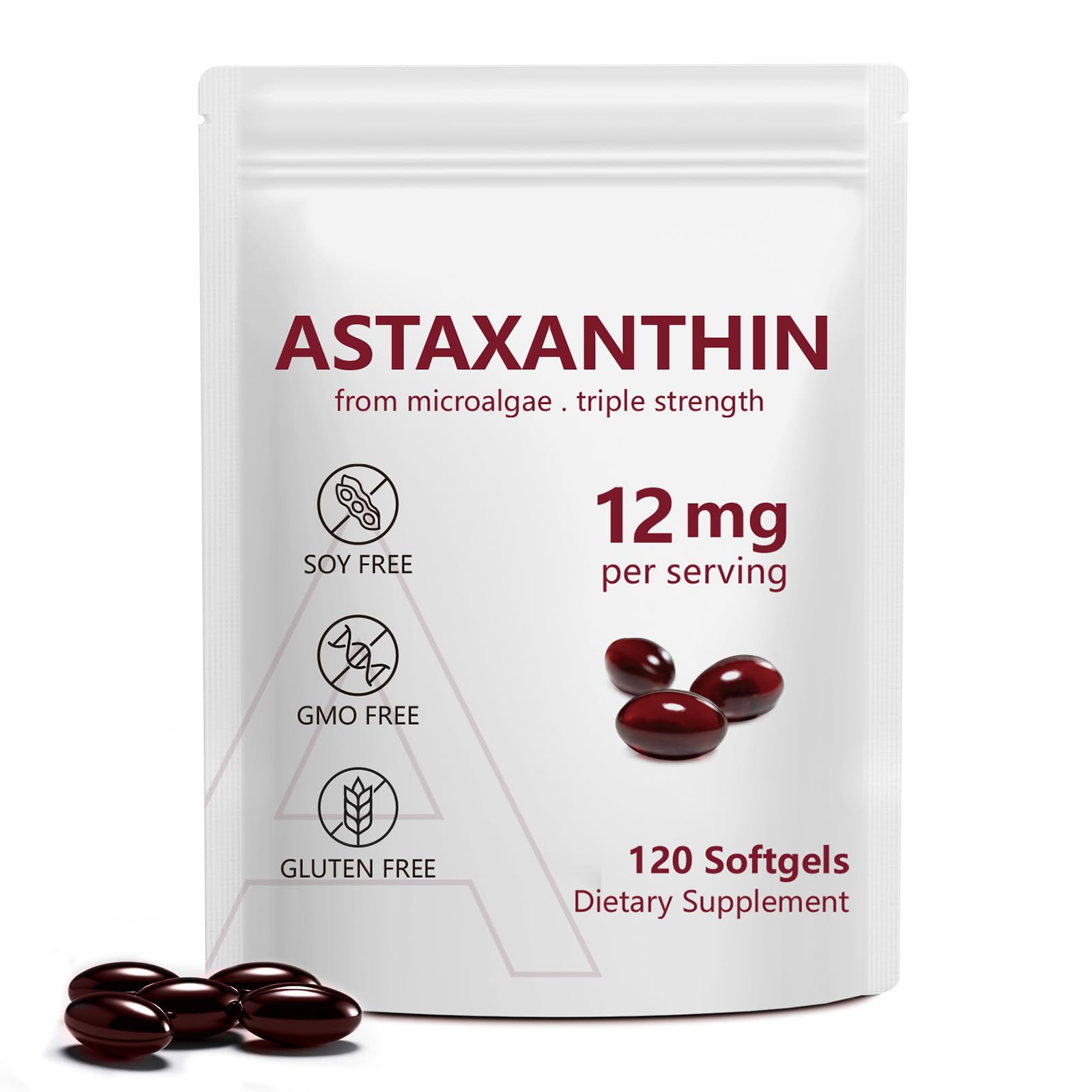 Easy to Use : Each bottle contains 120 softgels. Just one capsule daily provides a 4-month supply. Formulated with premium softgel capsules, it helps you quickly and effectively experience the antioxidant and health benefits of astaxanthin. Multiple Benefits : Astaxanthin Supplements is hailed as one of nature's most potent antioxidants. Daily supplementation with astaxanthin helps maintain eye health, promote skin elasticity, and support healthy circulation. Naturally Pure Formula Our astaxanthin nutritional supplements are derived from natural Haematococcus pluvialis algae, free from GMOs, soy, and gluten. Each capsule provides a pure. 12mg Astaxanthin Supplements Triple-strength formula delivers exceptional bioavailability for optimal absorption. Each serving contains 12mg of pure, natural astaxanthin. Antioxidant Activity astaxanthin supplements—A Natural Carotenoid. Crafted from pure, concentrated Icelandic algae extract, delivering one of the most potent formulations available.