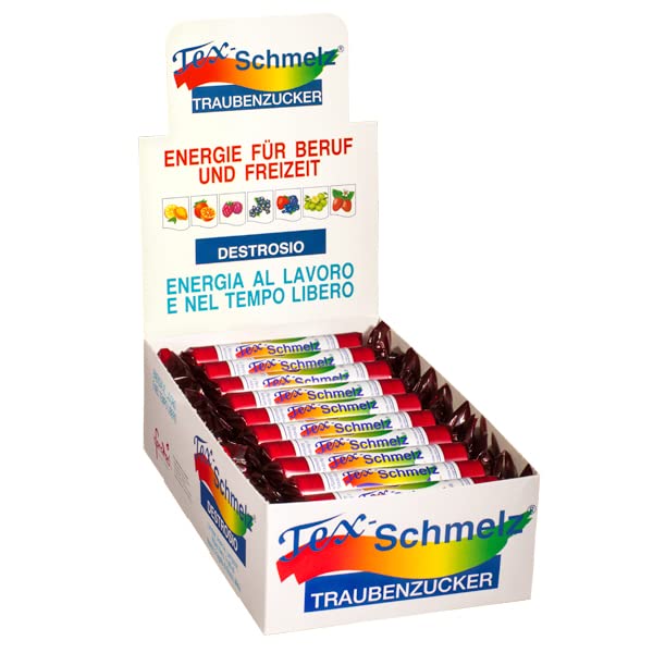 Tex-Schmelz - not just candy. Tex-Schmelz - a fruity and tasty energy boost, perfectly suited to the needs of our time: at school, at work, while playing sports, for diabetics, to recover after illness or physical imbalance, to boost brain activity, and more. The energy source for mind and body. Tex-Schmelz dextrose should always be within easy reach in your bag or pocket. INSTRUCTIONS FOR USE For a simple and immediate energy boost, consume 1 or 2 tablets at a time. Suitable for adults and children. It does not contain ingredients harmful to children, but adult supervision is recommended.