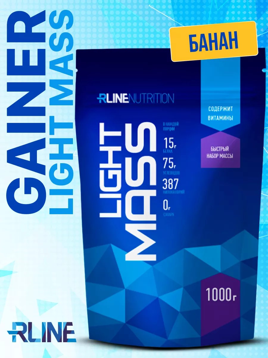 Light Mass, a high-carbohydrate gainer, was developed by RLine technologists to accelerate muscle growth. This process is the most energy-consuming.