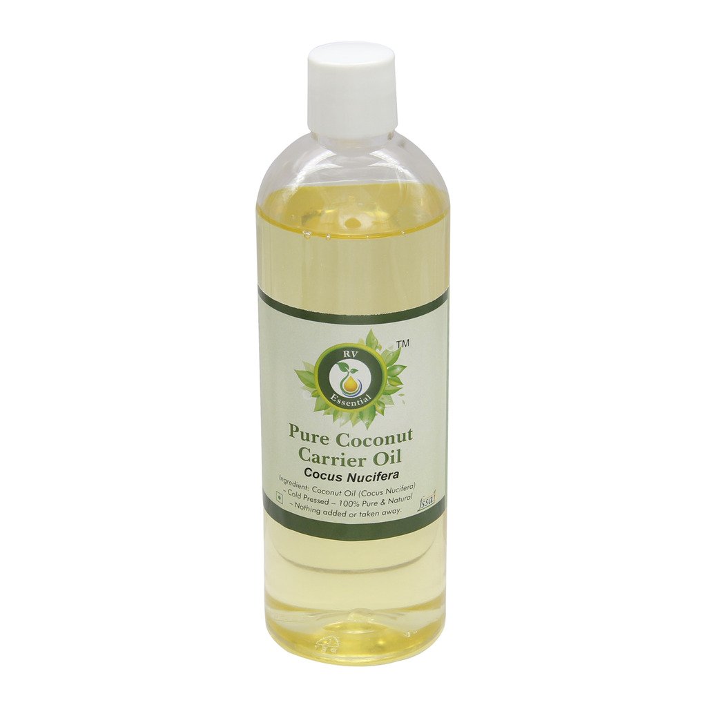 R V Essential Pure Coconut Carrier Oil 100ml (3.38oz)- Cocus Nucifera (100% Pure and Natural Cold Pressed) Coconut 3.38 Fl Oz (Pack of 1)