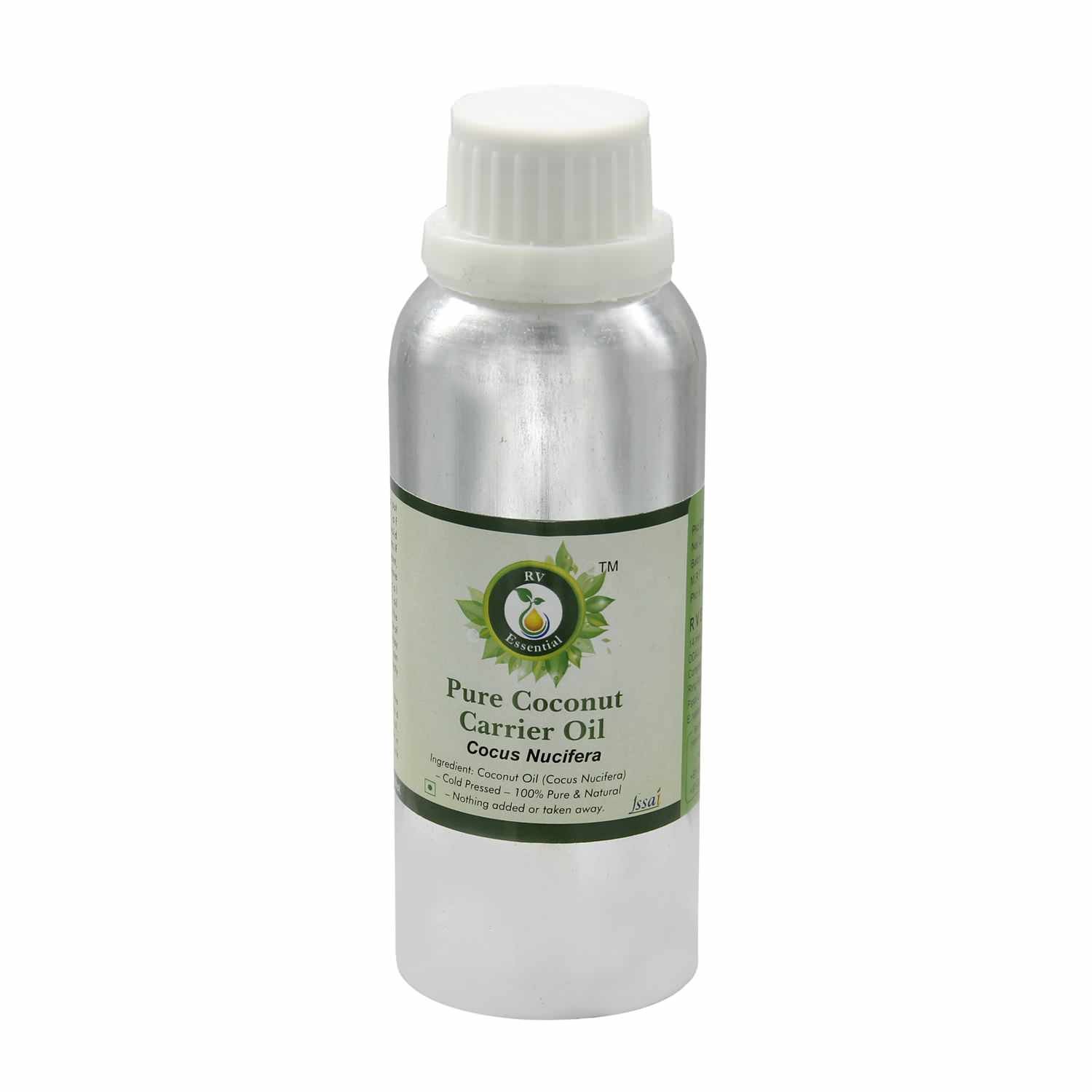 R V Essential Pure Coconut Carrier Oil- Cocus Nucifera (100 Pure and Natural Cold Pressed). Oils are packed in high quality amber glass bottles till 100ml. And 300ml, 630ml 1250ml in high quality virgin aluminium bottles.