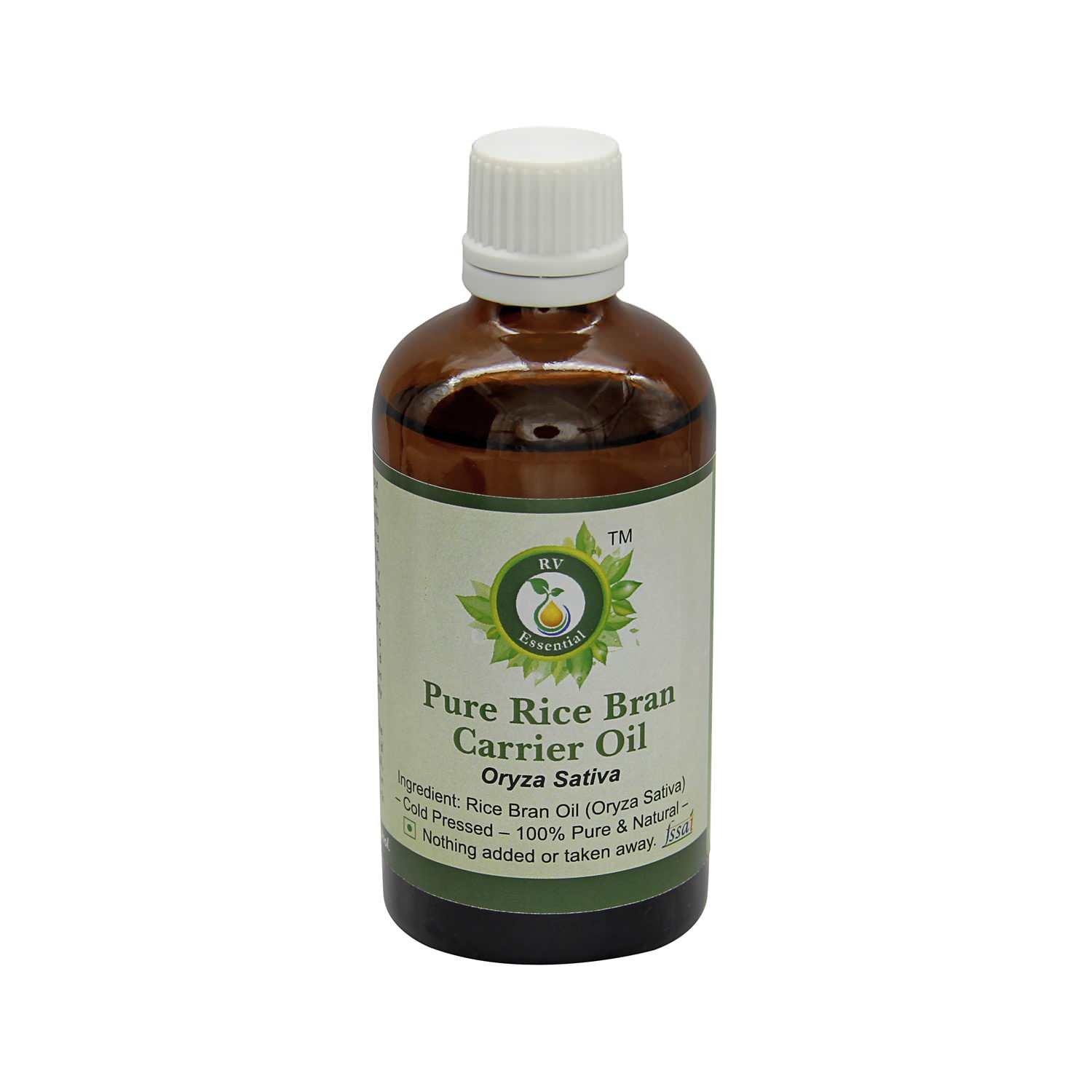 R V Essential Pure Rice Bran Carrier Oil 10ml (0.338oz)- Oryza Sativa (100% Pure and Natural Cold Pressed) 0.34 Fl Oz (Pack of 1)