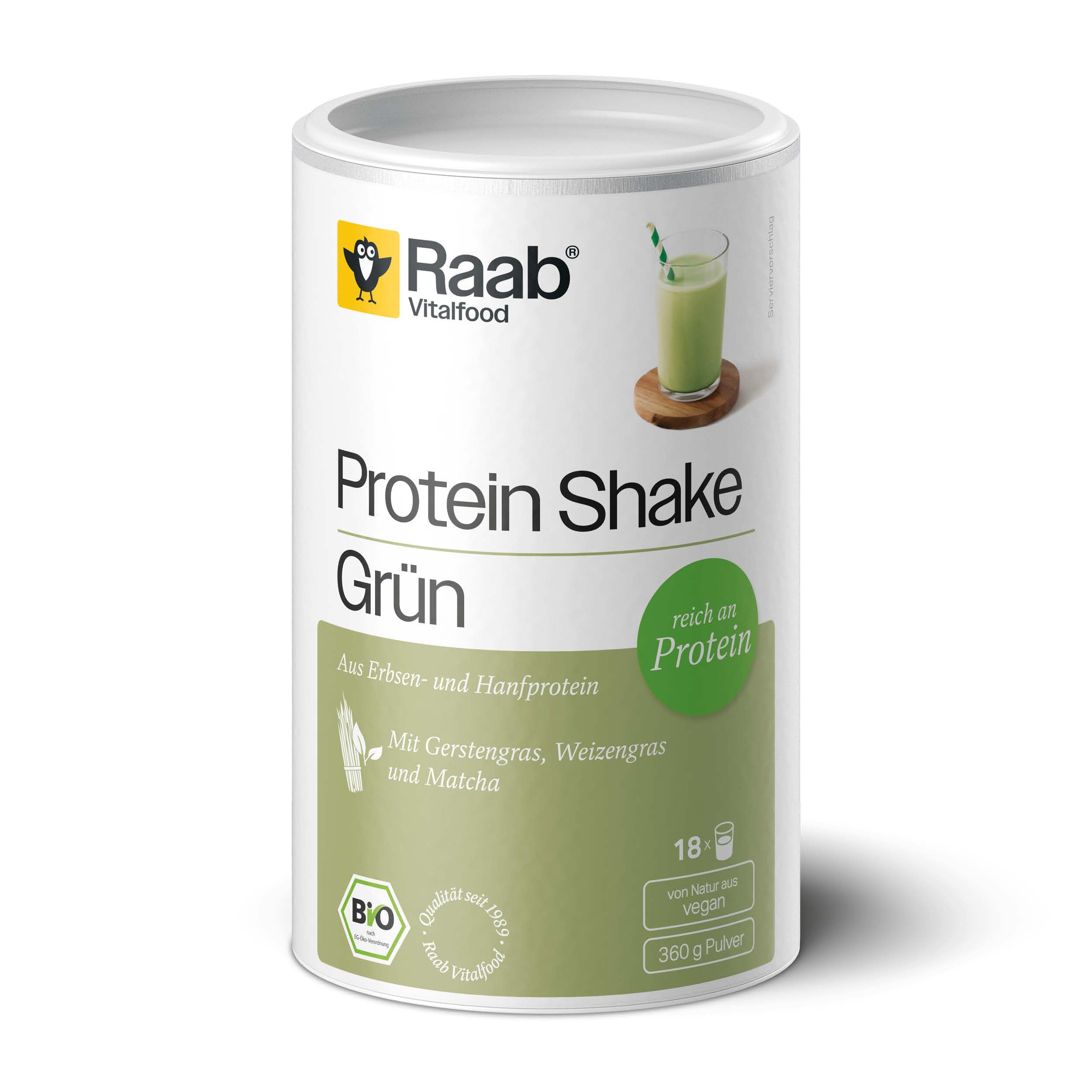 : Raab Protein Shake Green is a purely plant-based shake made from a blend of pea and hemp seed proteins. The mix is further enriched with barley and wheatgrass, as well as matcha green tea powder. Iron contributes to the reduction of tiredness and fatigue. The shake contains 60 plant-based protein. Protein contributes to the growth and maintenance of muscle mass. Ingredients: 60 pea protein powder, 20 hemp seed powder (partially oiled), 8 barley grass powder, 8 wheatgrass powder, 4 matcha green tea powder (from certified organic farming, peas from Canada). May contain traces of celery and mustard. Instructions for use: Mix 20 g (equivalent to 2 tablespoons) of powder with 250 ml of plant-based milk or milk. Oat milk is particularly recommended. For better mixing and a creamier texture, a vertical or immersion blender can be used. Safety Warning: The positive effects mentioned above occur from a daily consumption of 20 g of Raab Green Protein Shake. A varied and balanced diet and a healthy lifestyle are of great importance. Color and taste may vary as this is a natural product subject to seasonal variations. Technical fill height. See more
