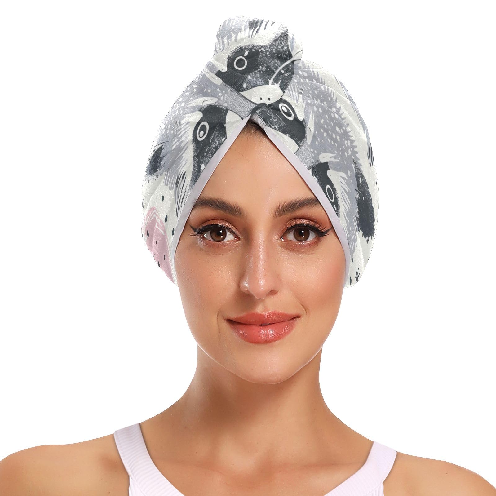 Raccoon Diagram Hair Towel 2 Pack Super Absorbent Hair Drying Towel Quick Dry Hair Turbans Head Towel with Button Twisty Wrap for Women Girls