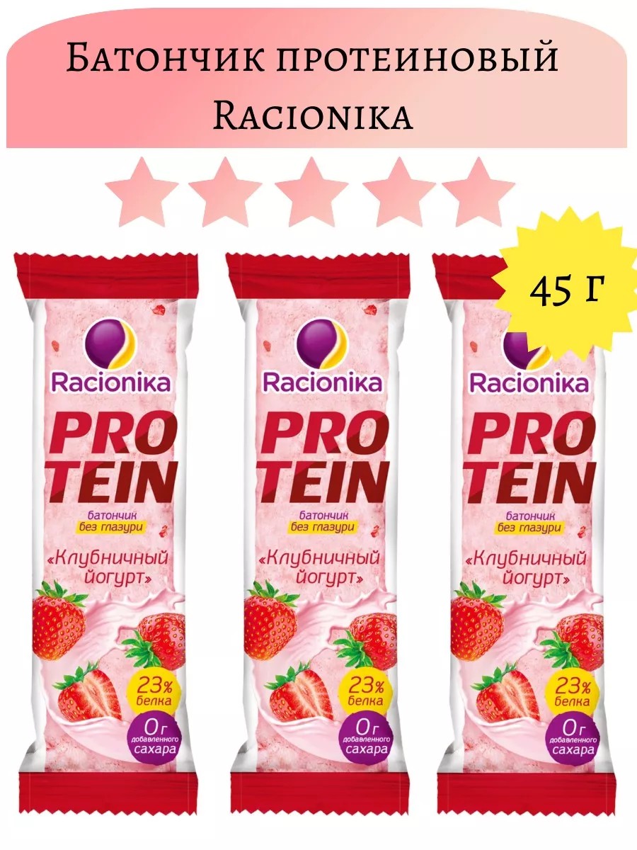 | Комплектация | Батончик протеиновый Protein Клубничный йогурт, 45г, 3шт |