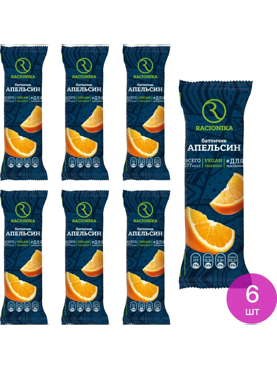 Комплект состоит из 6 шт. Цена за комплект. Чтобы быть всегда здоровым и полным сил, необходимо правильно питаться. Для таких целей существует множество соответствующих продуктов. Например, батончик диетический Racionika Diet в глазури, со вкусом апельсина. Он создан специально для людей. которые хотят быть стройными. Актуален и для вегетарианцев, а также тех, кто придерживается православных традиций и соблюдает религиозные посты. Батончик Racionika Diet реализуется в индивидуальной упаковке. В его составе содержатся следующие компоненты: патока, изолят горохового белка, глазурь кондитерская (лауриновый заменитель какао-масла, сахар, какао-порошок, эмульгатор лецитин, натуральный ароматизатор), мальтодекстрин, гидролизат пшеничного белка, инулин, подсластитель сорбит, волокна пшеничные, влагоудерживающий агент глицерин, масло растительное, регулятор кислотности лимонная кислота, премикс витаминный (витамины С, Е, В1, В2, В6, В12, фолиевая кислота, В5, РР, биотин) консервант сорбат калия, натуральный ароматизатор. Вес - 50 г. Батончик спортивный Racionika Diet отличается большим количеством белка и пищевых волокон. При этом содержание легкоусвояемых углеводов низкое. Быстро утолит голод и удивит своим необычным вкусом. Хранить продукт следует при температуре воздуха не выше +20гр. С и относительной влажности не более 75%. Ищите легкий и полезный вариант для перекуса, который всегда был бы под рукой? Диетический батончик Racionika Diet станет отличным выбором. Правильное питание / диетические батончики / здоровый перекус.