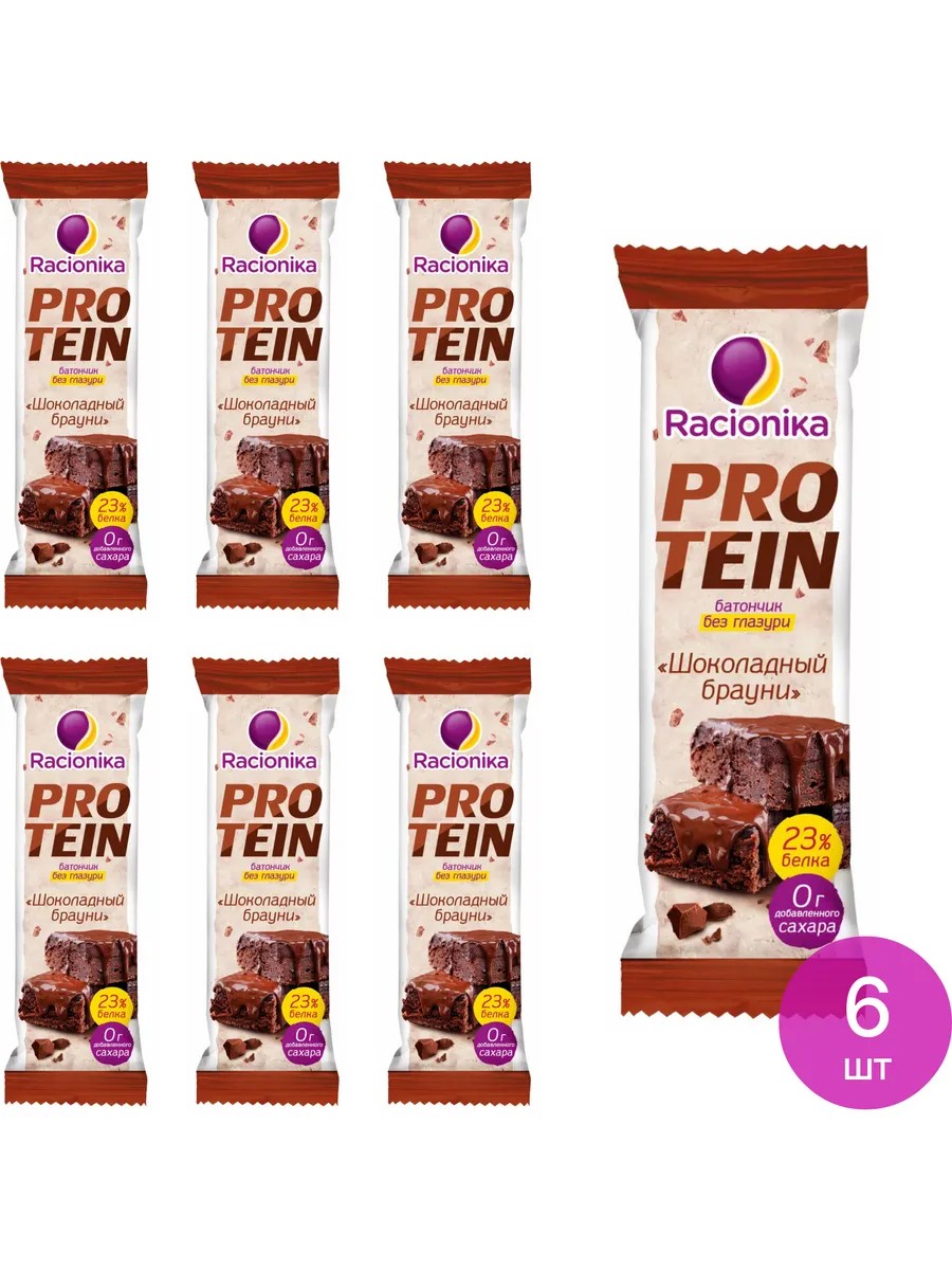 Протеиновый батончик Racionika / Рационика Protein высокобелковый неглазированный, для контроля веса, со вкусом шоколадный брауни 45г / здоровый пп перекус. Комплект состоит из 6 шт. Цена за комплект. Протеиновый батончик без сахара Racionika Protein - это полезный перекус, альтернатива вредным десертам, а также настоящее лакомство. Протеиновый высокобелковый неглазированный батончик подойдет для тех, кто любит и хочет сладкое, но не готов идти на компромисс с лишним весом. Протеиновый батончик без глазури Racionika Protein Шоколадный брауни - изумительное шоколадное удовольствие для эффективных тренировок. Высокое содержание белка - больше 10г в батончике позволит вам легко набрать нужное суточное количество белка без вреда для фигуры. Вес батончика 45 г. - идеален для 1 перекуса. Батончики диетические состоят из: концентрат молочного белка, концентрат сывороточного белка, изомальтоолигосахариды, какао-порошок алкализованный, какао-масло, влагоудерживающий агент глицерин, инулин, регулятор кислотности лимонная кислота, консервант сорбат калия, натуральный ароматизатор, подсластитель сукралоза. Это настоящая находка для тех, кто любит вкусные сладости без сахара и вреда для фигуры! Здоровое питание / спортивное питание / протеиновые батончики.