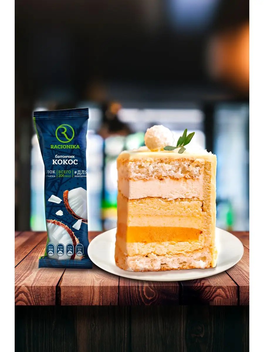 Утоляет голод на 4 часа. Всего 206 ккал. Можно заменить 1 прием пищи без вреда для здоровья. Вкусный и полезный перекус. Сытный и очень вкусный батончик Racionika Diet с кокосом. Всего 206 ккал в батончике 60г, а также пищевые волокна и витаминно-минеральный комплекс. Натуральный состав. Не содержит искусственных ароматизаторов и красителей.