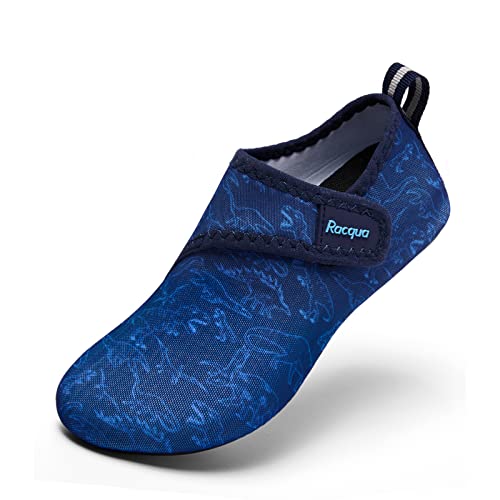 Racqua Boys Girls Swim Shoes Kids Beach Surf Water Shoes Aqua Sports Shoes Barefoot Quick-Dry Aqua Yoga Socks Toddler Pool Shoes 4.5-5.5 Big Kid Blue Dinosaur 2