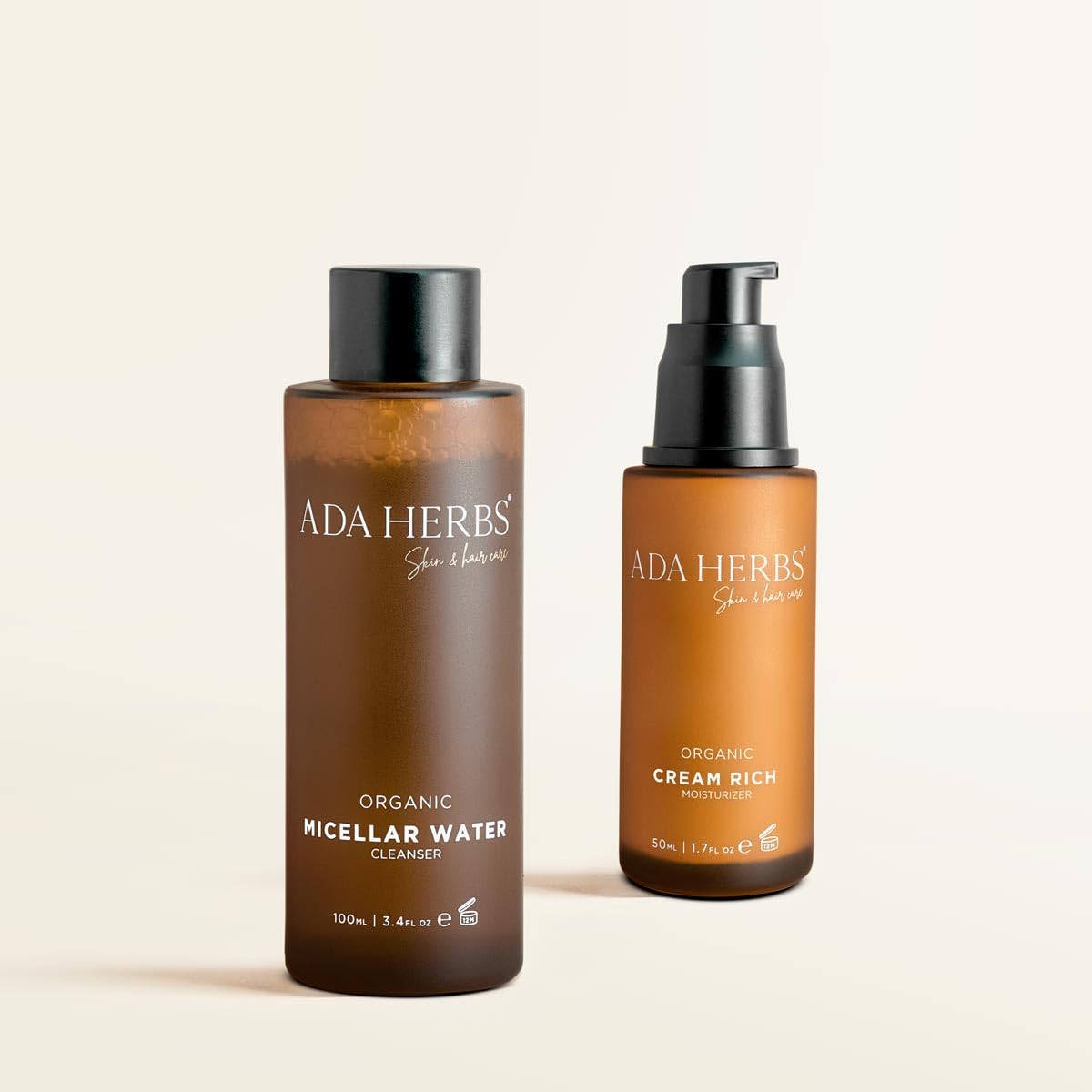 Simplify your skincare with Radiant Renewal Duo, combining no-rinse cleansing with intensive moisture for effortless radiance. Micellar Water (3.4 oz): Gentle all-in-one cleanser with micellar technology removes makeup, dirt, and oil without rinsing. Organic rose water tones and brightens, cucumber extract cools and hydrates. Royal jelly provides vitamins and minerals, glycerin maintains moisture barrier. Perfect for quick cleansing, travel, or sensitive skin. Cream Rich (1.7 oz): Super-moisturizer with sesame seed oil rich in omega-6 fatty acids deeply hydrates and protects. Shea butter provides intensive moisture, jojoba balances sebum, vitamin E fights free radicals. Aloe soothes. Velvet texture absorbs without greess. Effortless Pairing: Micellar water cleanses and tones without stripping, cream delivers deep nourishment and barrier repair. Perfect for minimal routines or layering with other products. How to Use: Apply micellar water to cotton pad, wipe over face, eyes, lips—no rinsing needed. Warm cream between hands, massage into face, neck, décolleté. Use morning and evening. The Results: Clean refreshed skin, balanced tone, minimized pores, deeply hydrated suppleness, strengthened barrier, and radiant glow. Both 95-99 natural.95-99 NATURAL QUICK ROUTINE: Both vegan, cruelty-free, alcohol-free. Two-step system ideal for busy lifestyles, travel, or gentle care for all skin types, including sensitive. ELASTICITY FLEXIBILITY SUPPORT: Royal jelly and glycerin in micellar water, combined with vitamin E and wheat protein in crea,m enhance firmness and resilience naturally. SOOTHING LAYERED MOISTURE: Cucumber and aloe in micellar water calm and refresh, jojoba and shea butter in cream seal hydration for a comfortable, supple complexion. TONING BARRIER STRENGTHENING: Rose water and royal jelly tone and brighten while sesame's linoleic and linolenic acids strengthen barrier, preventing moisture loss throughout the day. NO-RINSE CLEANSE TO DEEP HYDRATION: Micellar Water with rose and cucumber removes makeup and impurities. Cream Rich with sesame oil and omega-6 delivers intensive moisture for refreshed, nourished skin.