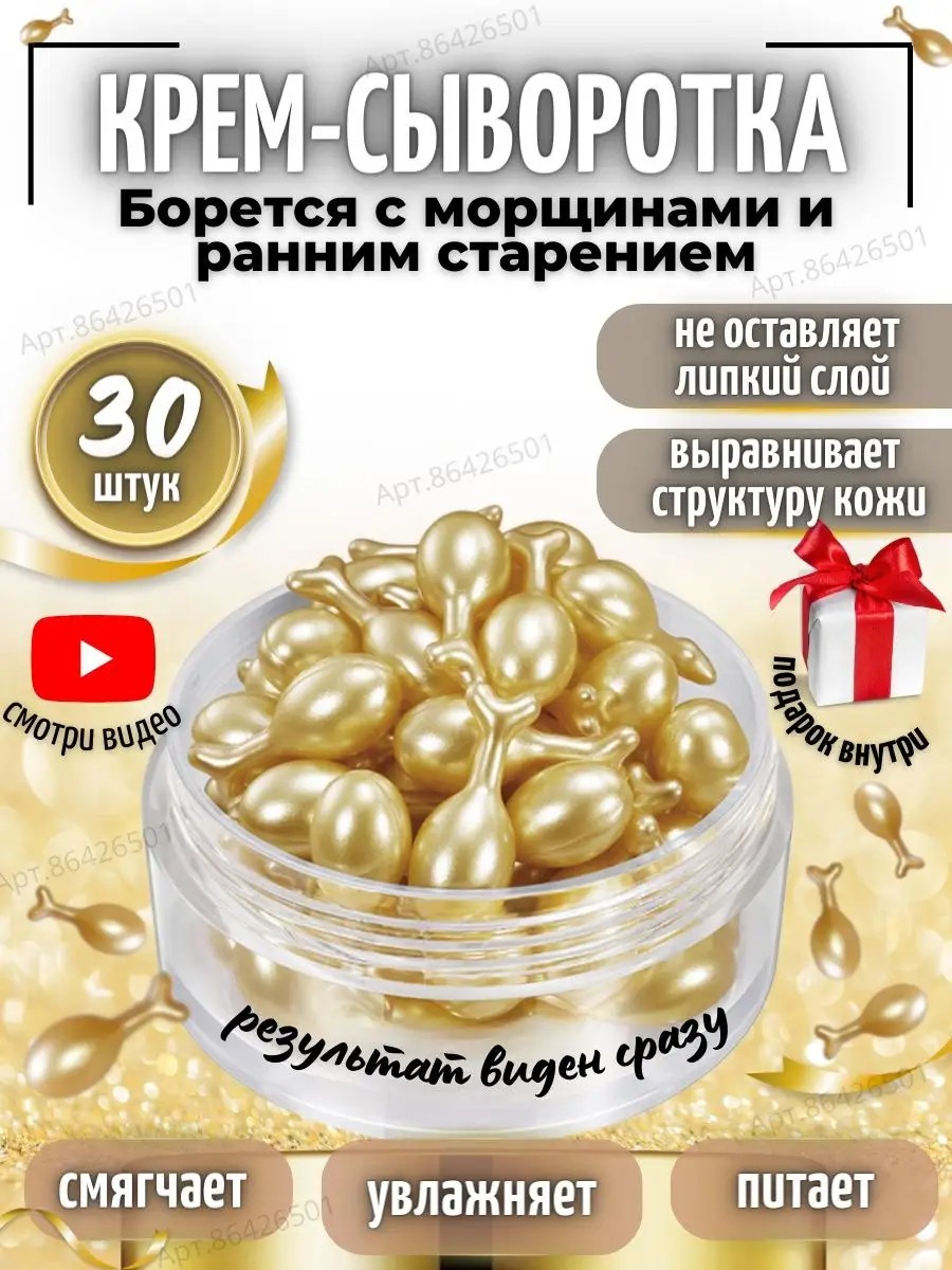 Сыворотка для лица - это волшебное средство, которое превратит вашу кожу в упругий шелковый покров молодости. Крем получил свою уникальность благодаря использованию косметических капсул, заполненных активными компонентами, которые провоцируют процесс омоложения кожи. Оказывая отличное увлажняющее действие, косметика проникает вглубь кожи, обеспечивая восстановление ее естественного баланса. Этот косметический продукт прекрасно наносится на кожу и очень быстро впитывается. После применения утром вы сразу почувствуете, как ваша кожа становится свежей, сияющей и отдохнувшей. Благодаря питательному действию и насыщению клеток коллагеном, сыворотка активно борется с морщинами, делая вашу кожу моложе и упругой. Один из главных компонентов продлевающий защитный антиоксидантный комплекс. Каждая капсула содержит витаминный комплекс, который оказывает омолаживающий эффект на клетки век вокруг глаз. Этот комплексный подход обогащает кожу необходимыми питательными веществами, носящими подтягивающий характер, что способствует усилению цикла процессов восстановления кожи. Данное разглаживающее противопигментное средство разработано специально для женщин, которые хотят добиться сияющей и упругой кожи лица и шеи. Уникальные свойства продукта оказывают омолаживающий эффект на область шеи и лица, восстанавливая и выравнивая текстуру кожи. Благодаря активным компонентам и антивозрастному составу, сыворотка помогает восстановить природное сияние и молодость вашей коже. Не упустите шанс обрести роскошную кожу без морщин и проблем! Закажите эту уникальную сыворотку на нашем маркетплейсе прямо сейчас и позвольте себе насладиться великолепным омолаживающим органическим эффектом, затормаживающим старение. Восстанавливающий процесс активируется с первого применения, и вы сможете наслаждаться результатами уже через несколько дней. Неотразимая и чарующая красота вашей кожи сделает вас богиней среди мужчин! Универсальный корейский подарок для мамы, сестры или подруги на любой семейный праздник.