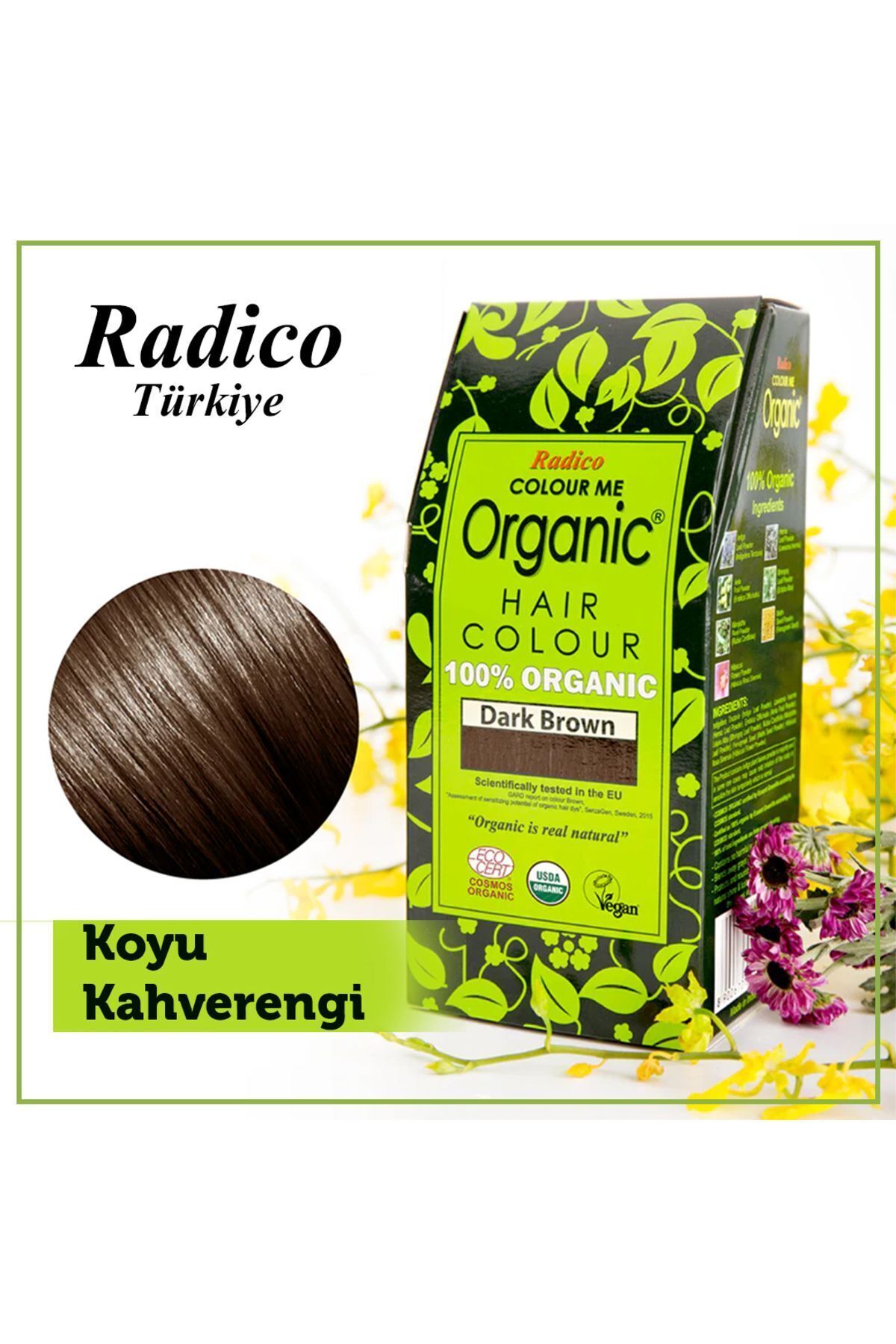 Radico'nun saç boyalari yalnizca dogal, sertifikali organik içerikler içerir. veya .9 degil, 0 organik. Ayurvedik, dogal ve organik bitkiler kullanilarak üretilen Color Me Organik, canli, sabit ve uzun süre kalici bir renk için saçinizi nazikçe kaplar. Kirilmayi ve asiri kurumayi önlemek için saç gövdesini dengeler ve besler, saçlari parlak, kalin, parlak ve saglikli birakir.