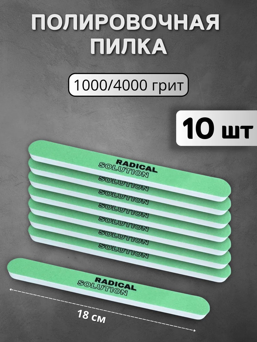 Набор пилок полировщиков для ногтей RADlCAL SOLUTlON — 10 шт. Это незаменимый инструмент для создания идеального маникюра в домашних условиях. В набор входят десять пилок с зернистостью 1000/4000 грит. Зеленая сторона шлифует ногтевую пластину абразивом 1000 грит, а белая сторона абразивом 4000 грит придает зеркальный глянец и ухоженный вид ногтям. С помощью этого набора вы сможете легко ухаживать за своими ногтями и поддерживать их в безупречном состоянии.