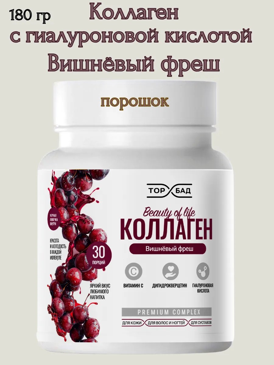 Коллаген Beauty of life, с гиалуроновой кислотой и витамином С, "Вишнёвый фреш", 180 гр Радоград – биодоступный коллаген 1 и 3 типа премиального качества с повышенным содержанием гиалуроновой кислоты.