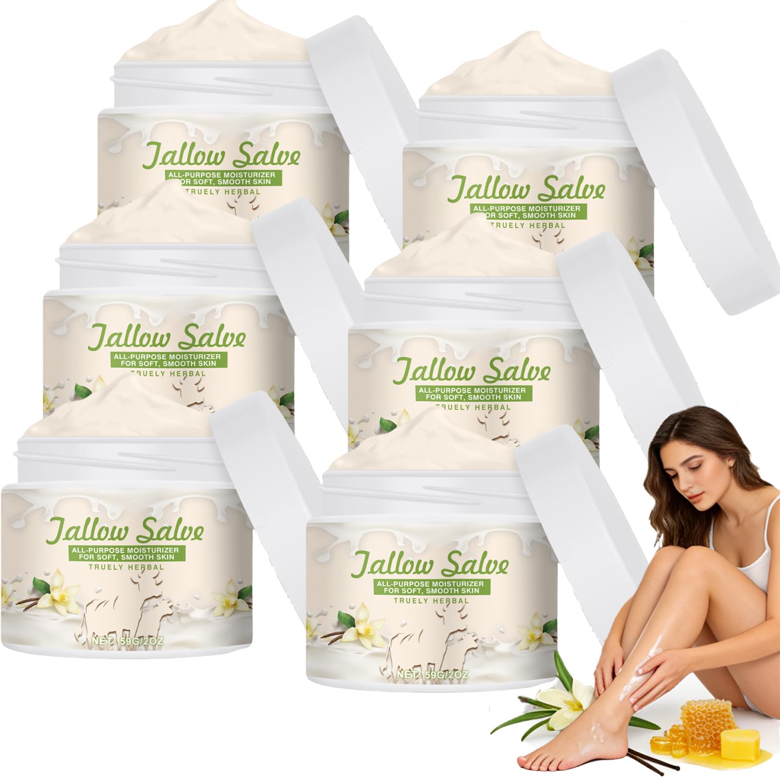 Our Beef Tallow Vanilla Cream is a whipped tallow moisturizer that gently envelops face and body. The combination of Beef Tallow, vanilla extract and glycerin serves as Whipped Tallow face cream, body butter for dry skin and rich tallow ointment for hands and feet – ideal for daily care routines without heavy formulations. Features: 1. Creamy, supple tallow texture, which is gently distributed. 2. Subtle vanilla scent without overpowering perfumes 3. Multifunctional moisture care for face, hands, feet and body. Usage: 1st Cleanse the skin completely and dry it first. 2nd Take an appropriate amount of this product and apply it evenly to face, hands, feet, elbows, knees and other body parts. 3rd Massage it gently to promote better absorption. Specifications: Item name: Tallow ointment Net content: 59 g. Shelf life: 3 years Target audience: Adults Women Men All skin types Contents of the delivery: 1 2 4 6 pieces of sebum ointment. Note: Please allow 1-2cm error due to manual measurement. 2. Due to the different displays and different light, the picture may not reflect the actual color of the item. Thank you for your understanding. About after-sales service: If you encounter any problems with the purchase and use of our products, please contact us in time, we will serve you 24 hours. SAFETY WARNING Store in a cool, dry place and protect from sunlight. Keep out of the reach of children.Versatile Family Care : A can as Beef Tallow body lotion, hand cream and foot care ideal for the sink or bedside table to massage dry shins, rough heels or cuticles when the skin feels tense. Supports suppleness and elasticity : The Beef Tallow Body Butter glides over arms, legs and elbows to smooth rough, dry spots leaves a soft, supple skin feeling for daily body care. Gentle for sensitive skin : The simple formula of Beef Tallow, glycerin and beeswax creates a tallow balm for face and body that soothes dry or easily stressed skin - without strong fragrances or irritating additives. Lightweight Vanilla Body Cream : The whipped texture is easy to distribute and quickly absorbed, without a greasy feeling this Beef Tallow face cream leaves a soft vanilla finish for arms, legs and shoulders. Deep Moisturizing Care : Rich Beef Tallow for the skin melts into dry areas and forms a soft protective layer works as a facial care for dry skin and body cream for hands, knees and heels.Beef Tallow Vanilla Cream vochtinbrengende crème voor gezicht en lichaam, verstevigde tallow-zalf voor de droge huid, voedende huidbalsem met glycerine en bijenwas, hydraterende boter (6) Onze Beef Tallow Vanilla Cream is een geslagen tallow vochtinbrengende crème die gezicht en lichaam zacht omhult. De combinatie van Beef Tallow, vanille-extract en glycerine dient als Whipped Tallow gezichtscrème, lichaamsboter voor droge huid en rijke tallow-zalf voor handen en voeten – ideaal voor dagelijkse verzorgingsroutines zonder zware formuleringen. Eigenschappen: 1. Romige, soepele tallow-textuur, die zacht wordt verdeeld. 2. Subtiele vanillegeur zonder overweldigende parfums 3. Multifunctionele vochtverzorging voor gezicht, handen, voeten en lichaam. Gebruik: 1ste Reinig de huid volledig en droog deze eerst af. 2de Neem een geschikte hoeveelheid van dit product en breng het gelijkmatig aan op gezicht, handen, voeten, ellebogen, knieën en andere lichaamsdelen. 3de Masseer het zachtjes in om een betere absorptie te bevorderen. Specificaties: Artikelnaam: Talg zalf Netto inhoud: 59 g. Houdbaarheid: 3 jaar Doelpubliek: Volwassenen Vrouwen Mannen Alle huidtypes Inhoud van de levering: 1 2 4 6 stuks talgzalf. Opmerking: Houd rekening met een foutmarge van 1-2 cm vanwege handmatige meting. 2. Als gevolg van de verschillende weergaven en het verschillende licht kan het zijn dat de afbeelding niet de werkelijke kleur van het artikel weergeeft. Bedankt voor je begrip. Over after-sales service: Als u problemen ondervindt met de aankoop en het gebruik van onze producten, neem dan tijdig contact met ons op, wij zullen u 24 uur van dienst zijn. VEILIGHEIDSWAARSCHUWING Op een koele, droge plaats bewaren en tegen zonlicht beschermen. Buiten het bereik van kinderen bewaren.Veelzijdige gezinsverzorging : een blikje als Beef Tallow bodylotion, handcrème en voetverzorging ideaal voor de wastafel of nachtkastje om droge scheenpoten, ruwe hielen of nagelriemen te masseren wanneer de huid gespannen aanvoelt. Ondersteunt soepelheid en elasticiteit : de Beef Tallow Body Butter glijdt over armen, benen en ellebogen om ruwe, droge plekken glad te maken laat een zacht, soepel huidgevoel achter voor dagelijkse lichaamsverzorging. Zacht voor de gevoelige huid : de eenvoudige formule van Beef Tallow, glycerine en bijenwas creëert een tallow balsem voor gezicht en lichaam, die droge of snel gestreste huid kalmeert – zonder sterke geurstoffen of irriterende toevoegingen. Lichtgewicht Vanilla Body Cream : de opgeklopte textuur is gemakkelijk te verdelen en trekt snel in, zonder vettig gevoel deze Beef Tallow gezichtscrème laat een zachte vanilleafwerking achter voor armen, benen en schouders. Diepe hydraterende verzorging : rijke Beef Tallow voor de huid smelt in droge gebieden en vormt een zachte beschermlaag werkt als gezichtsverzorging voor droge huid en lichaamscrème voor handen, knieën en hielen.