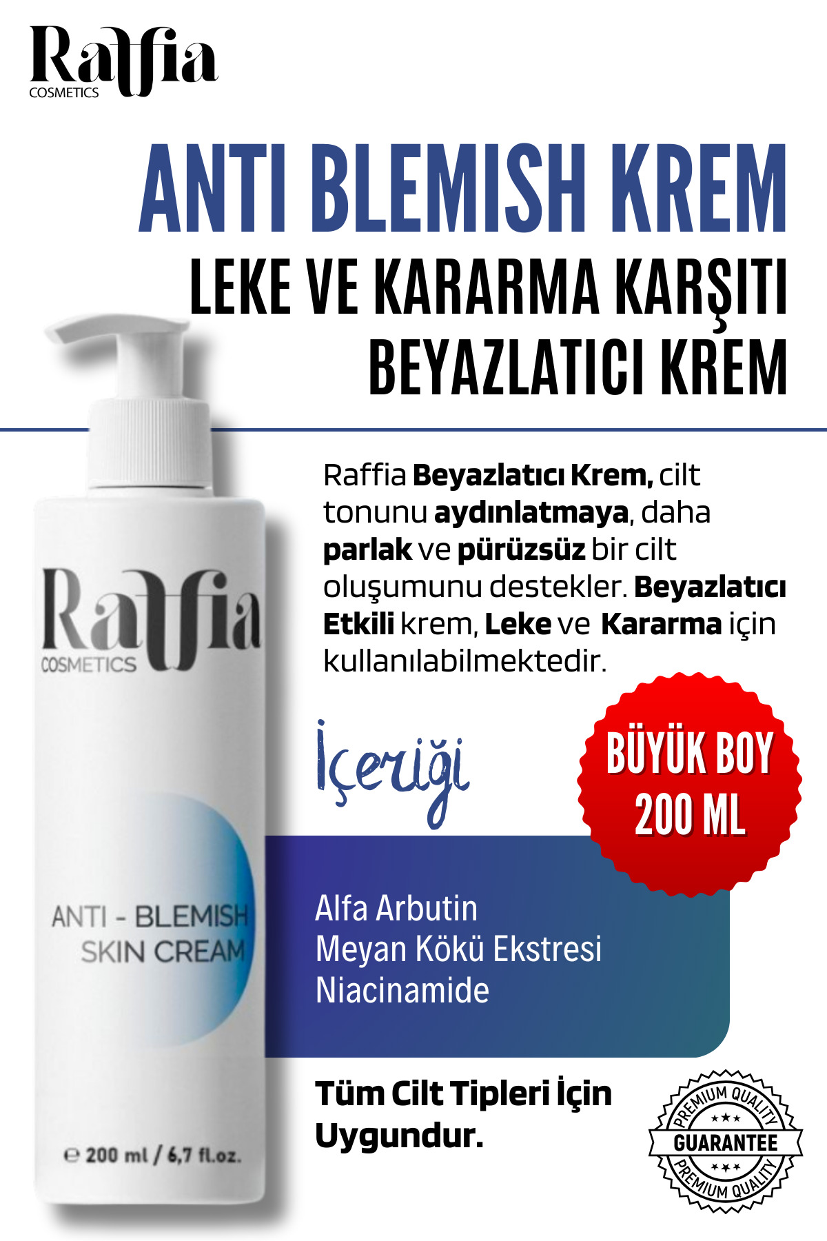 Raffia Cosmetics Anti-Stain and Anti-Darkening Whitening Cream 200ml Skin Face and Genital Area Whitening Cream