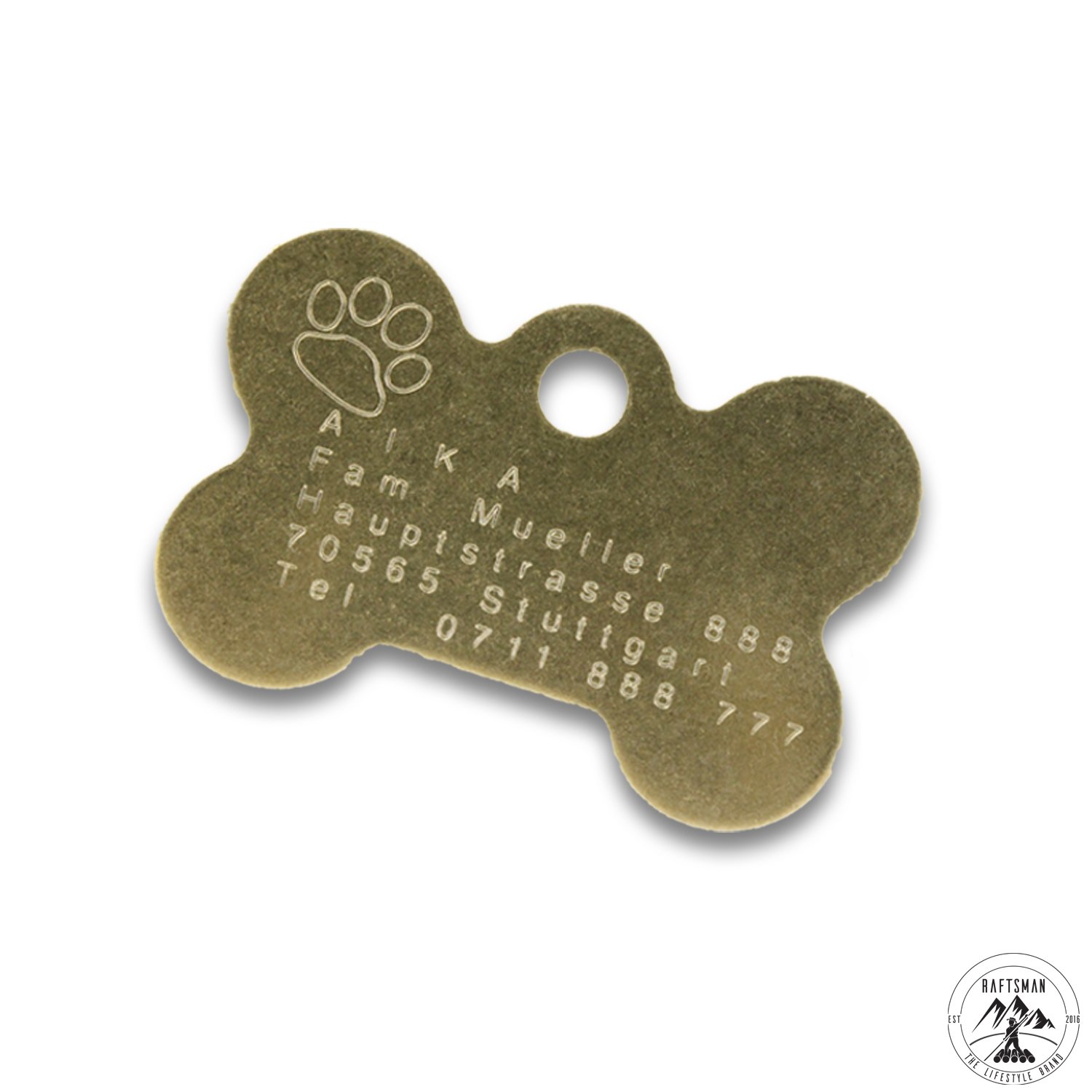 ✓ FACTION to dog collar dog crockery flex line guide or jogging line using the enclosed high quality O-ring (key ring) quickly and easily.Other individual fastenings are of course also possible due to the corresponding 4mm hole in the dog brand.✓ Identification of dog owners dog owners in an emergency possible at any time because the animal can be assigned to its owner quickly and clearly.Thanks to our dog badge, you also contribute to the protection of your best friend.✓ Our dog brands are available in different colors (red blue silver gold) and different materials (brass aluminum) as well as with different fonts.The low weight ensures comfortable wearing comfort and does not restrict your animal in its urge to move.The high -quality materials and the diamond engraving also ensure a long service life in snow and rain.✓ Dog brand dog brand ID day address trailer trailer badge with individual personalized diamond desired engraving (made in Germany) in bone shape including a engravated Pfoten logo.This dog brand gives your pet an individual and unique note without being intrusive.Data transmission: Send the data required for the engraving (see pictures) via your account (my account My orders Seller contact).The shipping takes place approx. 48 hours after receipt of the data.If the data on the engraving of your badge do not enter into our badge within 72 hours, we reserve a voucher for a engraving in front of you in front of you.For details on the order, see ""Further product details"" .