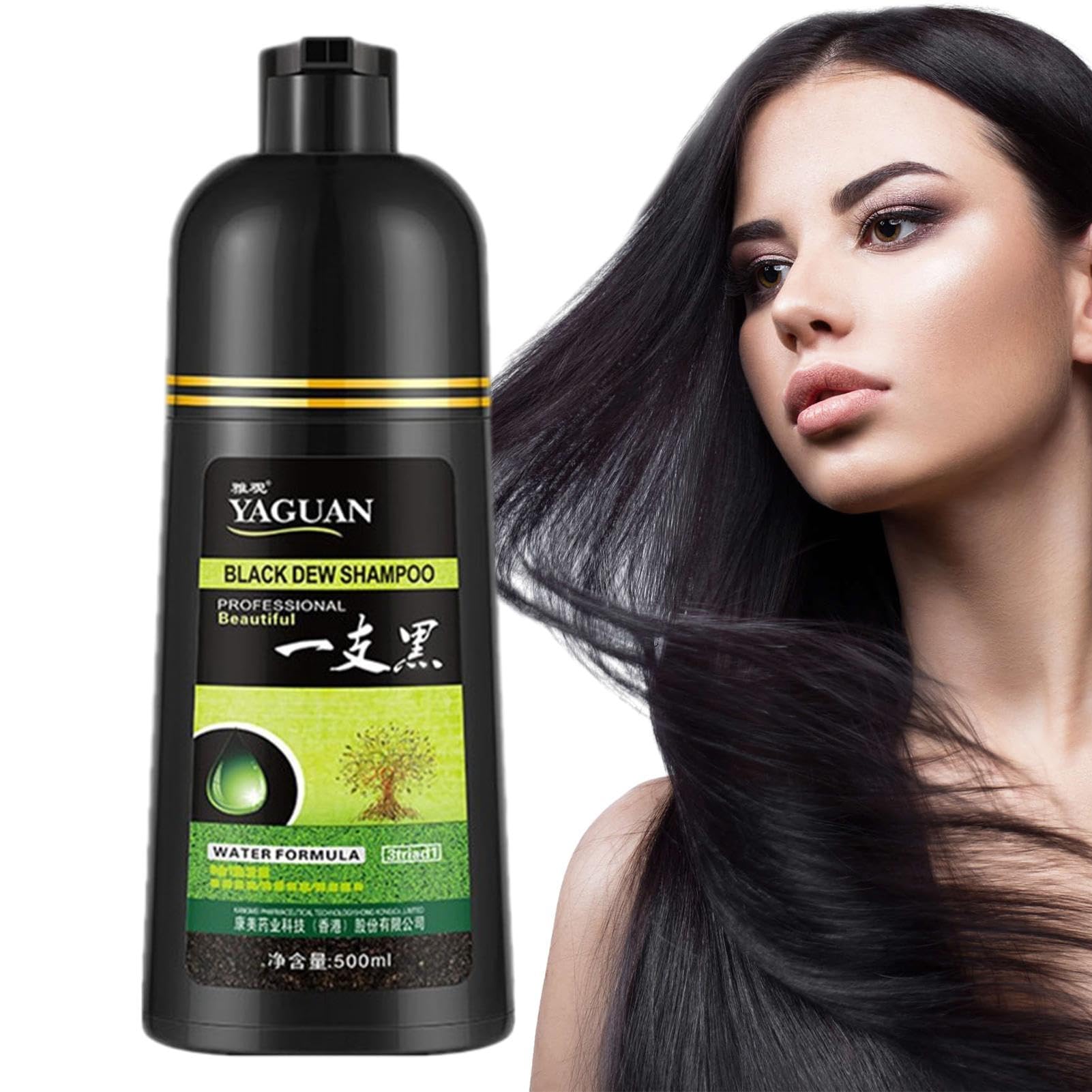 Shampoing noir instantané pour cheveux gris - 500 ml - Shampooing à base de plantes longue durée avec formule à l'eau en quelques minutes - Couleur noire longue durée Rainao