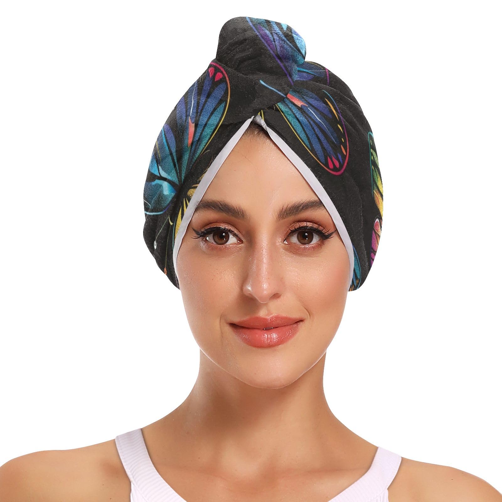 Rainbow Big Butterfly Hair Towel 2 Pack Super Absorbent Hair Drying Towel Quick Dry Hair Turbans Head Towel with Button Twisty Wrap for Women Girls