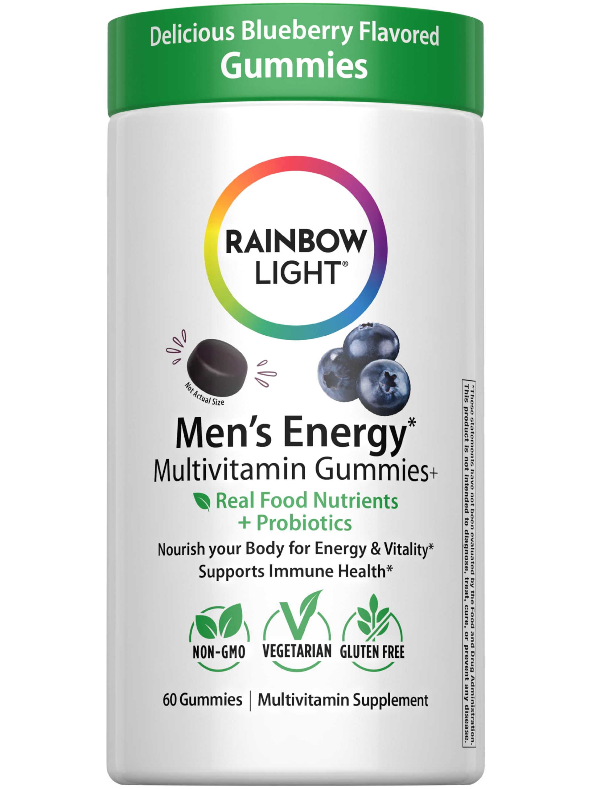 Rainbow Light Mens Energy Multivitamin Gummies | Real Food Nutrients + Probiotics | with Energizing B Vitamins | Supports Immune Health | Non-GMO and Gluten Free Supplement | 60 Count