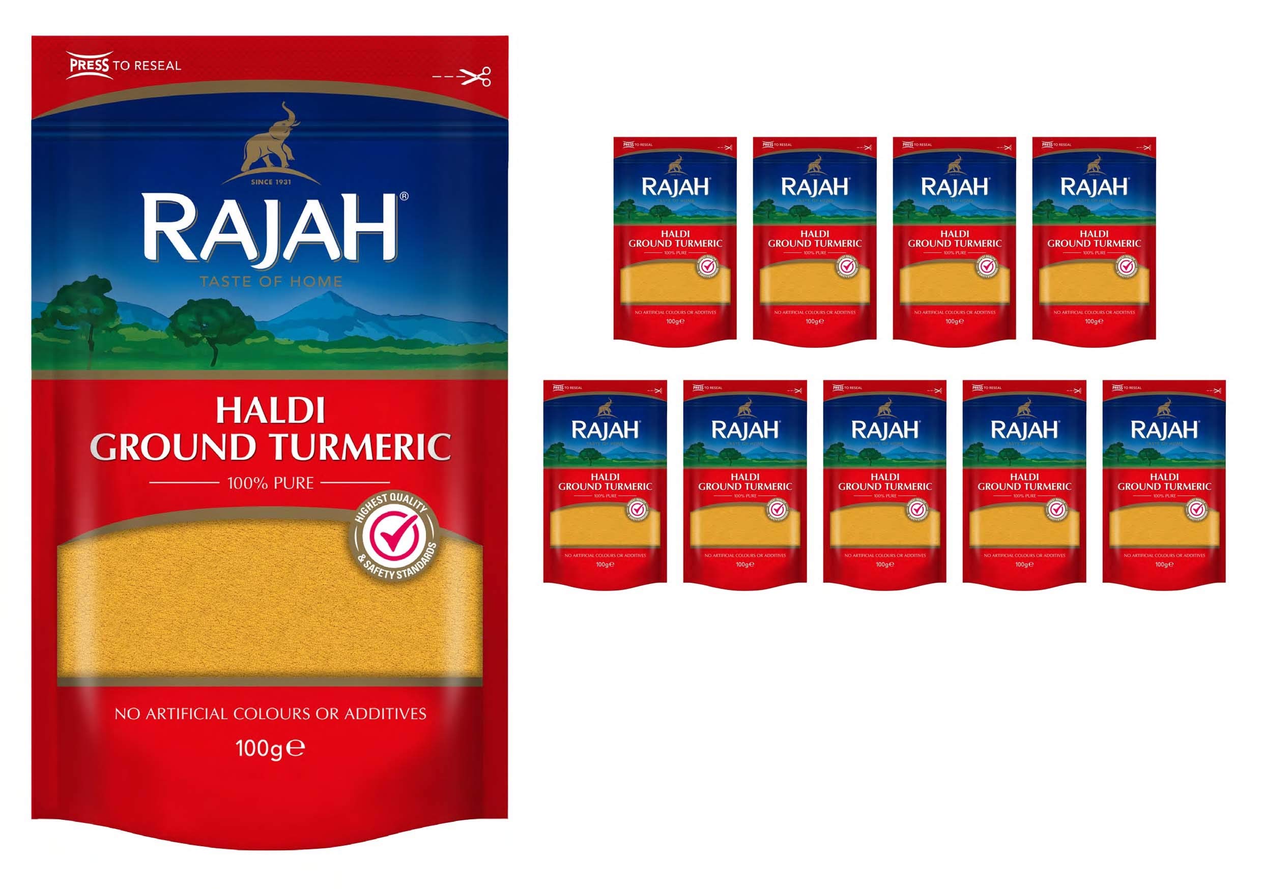 Rajah Spices Haldi Ground Turmeric Holud Haldi Haldar Haladi 100g Pack of 10