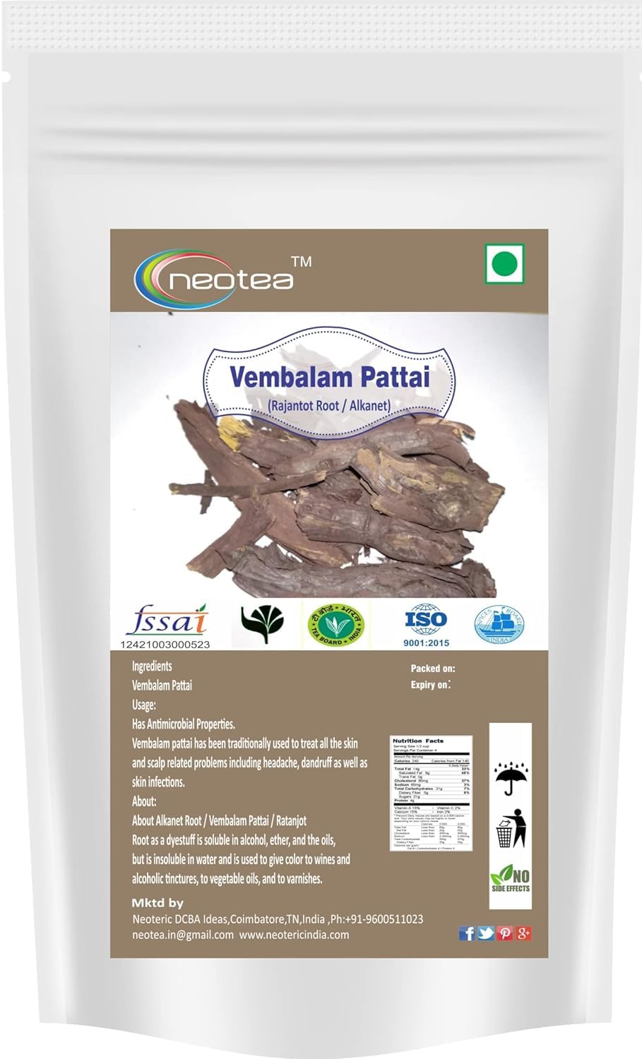 Whole alkanet alkanna tinctoria ratan jot vembalam pattai. Neotea, a brand of health and household vitamins and dietary supplements. The products spectrum we offer to our customers includes Dry Fruit, Herbal Powder, Organic Cocoa Powder and many more.Ratanjot ? (Hindi name) or Alkanna Tinctoria (Botanical name) is an ancient Ayurvedic herb and is commonly known by many intriguing names: Alkanet (English name), Dyer's Bugloss, or Hoary Puccoon to name a few. Nutricia Food is established with a vision to enhance lifestyle of people by providing them quality Ayurvedic products at most competitive rates. We recommend people to make use of this product under proper guidance.PURE Vembalam pattai (ALKANET). Free Advait Abeer Peppermint Lip Scrub. 100 Pure, Natural And Packed In Most Hygienical Environment. Package content: 1 rajantot root alkanet vembalam pattai.