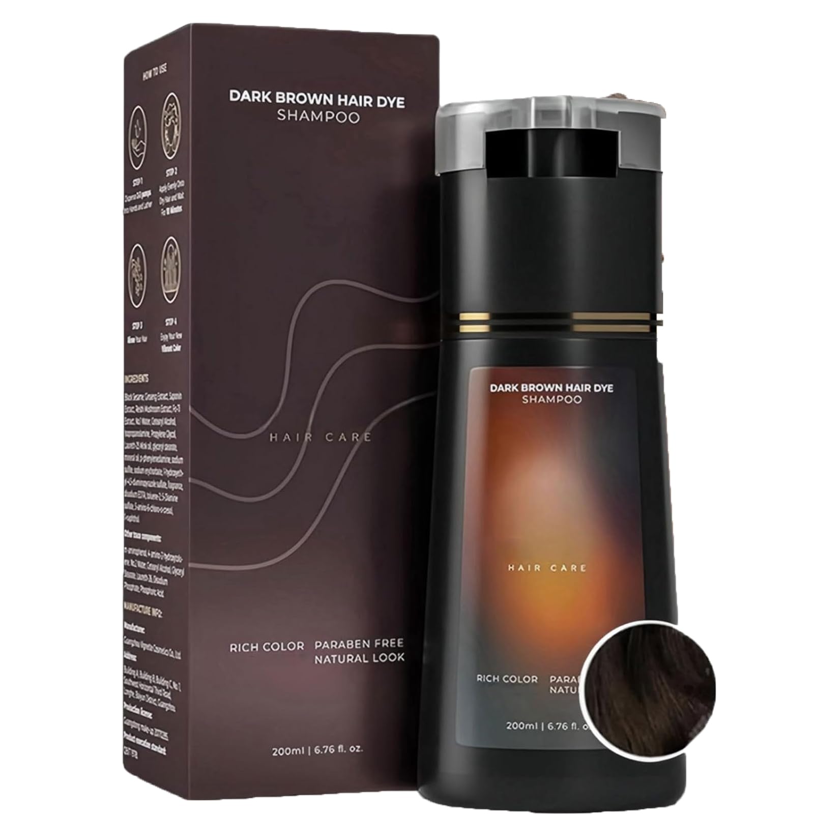 Hair dye for hair coverage, hair coloring shampoo, natural hair coloring shampoo, instant hair coloring shampoo, hair coloring shampoo INGREDIENTS Waterproof INSTRUCTIONS Yes, detailed instructions are included in Spanish. SAFETY WARNING No See moreVersatile application: Our color shampoo is ideal for daily care or temporary hair changes. It adapts to your lifestyle to ensure you look your best for any occasion. Effective color retention: Thanks to our innovative color-locking technology, our shampoo keeps hair color vibrant even after multiple washes. Say goodbye to color fading and enjoy long-lasting vibrancy. Easy to use: Our hair color shampoo is easy to use and allows you to achieve salon-quality results in no time. With our color shampoo, you can achieve thick, dark hair without compromising scalp health. Effective heating: Transform your hair color in just 10 minutes with our color shampoo. The advanced coloring formula covers premature graying while keeping hair healthy and moisturized. Safe ingredients: Our color shampoo is enriched with natural ingredients that nourish hair and cover gray, leaving it luxuriously shiny, healthy, and radiant.Shampooing Pour Coloration,Colorant Naturel pour Cheveux Gris,Shampoing Pour Teinture Des Cheveux,Natural Hair Color Shampoo,Hair Dye Shampoo,200mlDESCRIPTION DU PRODUIT DESCRIPTION DU PRODUIT Colorant pour cheveux pour la couverture des cheveux, shampoing colorant pour cheveux, shampoing colorant naturel pour cheveux, shampoing colorant instantané pour cheveux, shampoing colorant INGRÉDIENTS Étanche MODE D'EMPLOI Oui, des instructions détaillées sont incluses en espagnol. AVERTISSEMENT DE SÉCURITÉ non Voir plusApplication polyvalente : notre shampooing coloré est idéal pour les soins quotidiens ou pour les changements temporaires de cheveux. S'adapte à votre style de vie pour vous assurer un look parfait en toute occasion. Fixation efficace de la couleur : grâce à notre technologie innovante de fixation de la couleur, notre shampooing conserve la couleur des cheveux vibrante même après plusieurs shampooings. Dites adieu à la décoloration de la couleur et profitez d'une vivacité durable. Facile à utiliser : notre shampooing colorant pour cheveux est facile à utiliser et vous permet d'obtenir des résultats de qualité de salon en un rien de temps. Avec notre shampooing colorant, vous pouvez obtenir des cheveux épais et foncés sans compromettre la santé du cuir chevelu. Chauffage efficace : transformez la couleur de vos cheveux en seulement 10 minutes avec notre shampooing colorant. La formule colorante avancée couvre le grisonnement précoce tout en gardant les cheveux sains et hydratés. Ingrédients sûrs : notre shampooing colorant est enrichi en ingrédients naturels qui nourrissent les cheveux et couvrent la couleur grise, les laissant luxueusement brillants, sains et lumineux.
