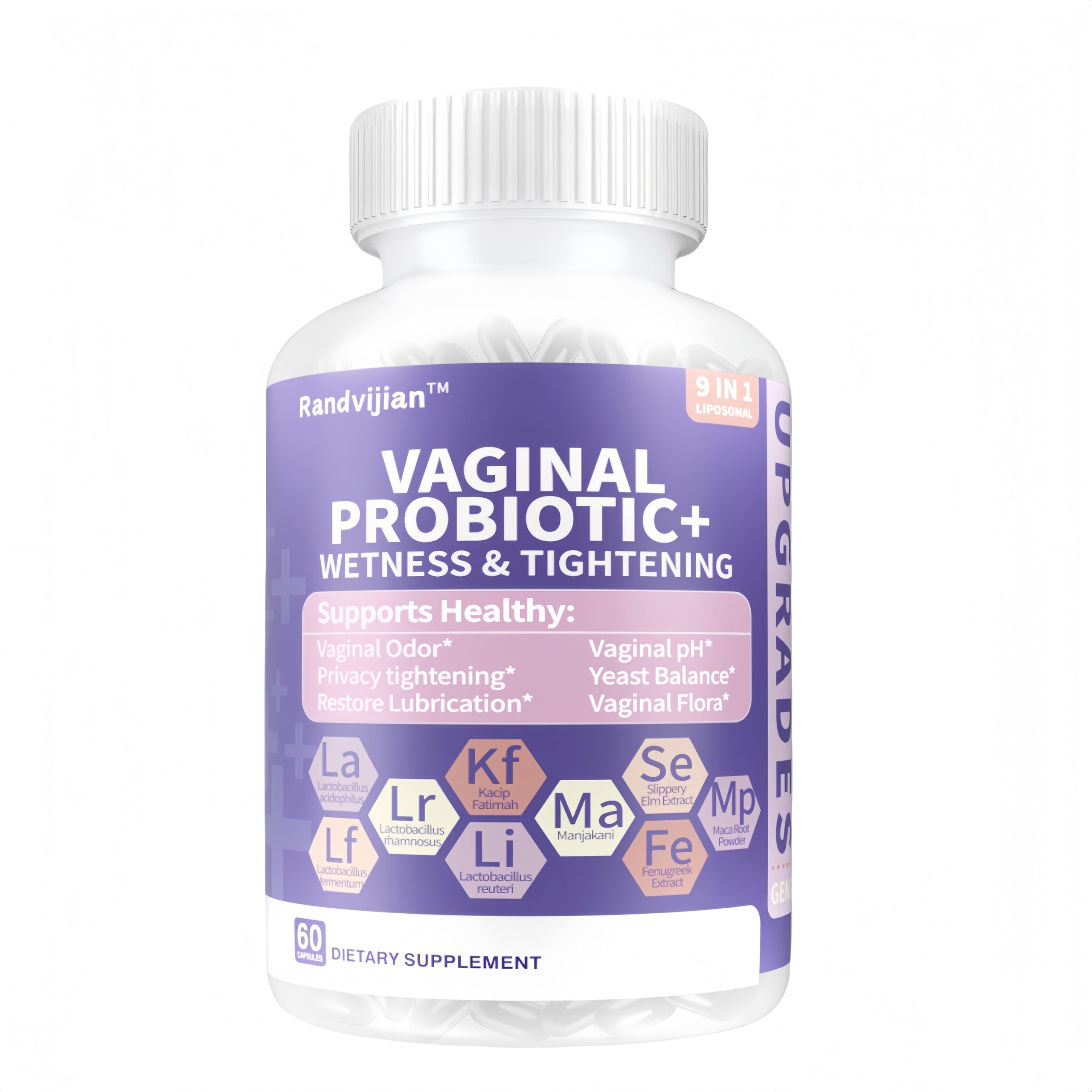 Restore, Refresh, and Revitalize Your Intimate Wellness with Randvijian 9-in-1 Liposomal Vaginal Probiotic 9-in-1 Liposomal Vaginal Probiotic Wetness Tightening Formula—a scientifically designed, all-natural supplement crafted to support comprehensive intimate health. Our unique 9-in-1 formula combines high-potency probiotics with potent herbal extracts to address multiple aspects of vaginal wellness, helping you feel fresh, balanced, and confident every day.Vegan capsules, no fillers, and made with premium Malaysian botanical extracts for reliable, gentle intimate care. Potent Herbal Blend – Enriched with Kacip Fatimah extract for lubrication, Manjakani extract for tightening, Slippery Elm, Fenugreek, and Maca Root to support intimate tissue health and comfort. Clinically Studied Strains – Features Lactobacillus reuteri, L. acidophilus, L. rhamnosus, and L. fermentum to promote healthy vaginal flora and maintain optimal pH levels naturally. Sugar-Free Allergen-Free – Contains no soy, dairy, wheat, sugar, eggs, fish, shellfish, peanuts, tree nuts, artificial sweeteners, colors, preservatives, or magnesium stearate. Suitable for gluten-free and dairy-free lifestyles. 9-in-1 Comprehensive Support – Our advanced liposomal formula combines probiotics, herbal extracts, and natural tightening agents to support vaginal odor, pH balance, lubrication, yeast balance, and intimate wellness.