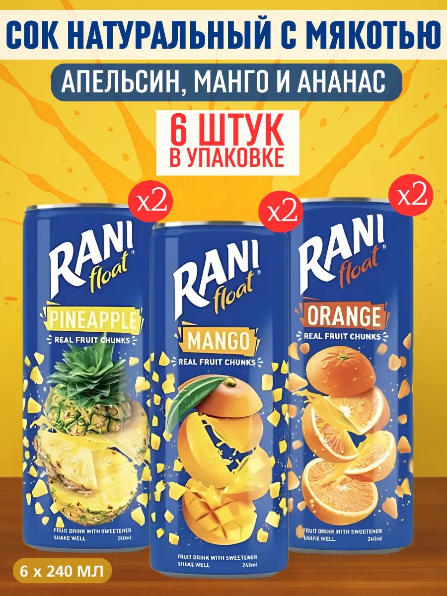 Rani float Микс напитков RANI: Ананас, Апельсин, Манго — 6×240 мл