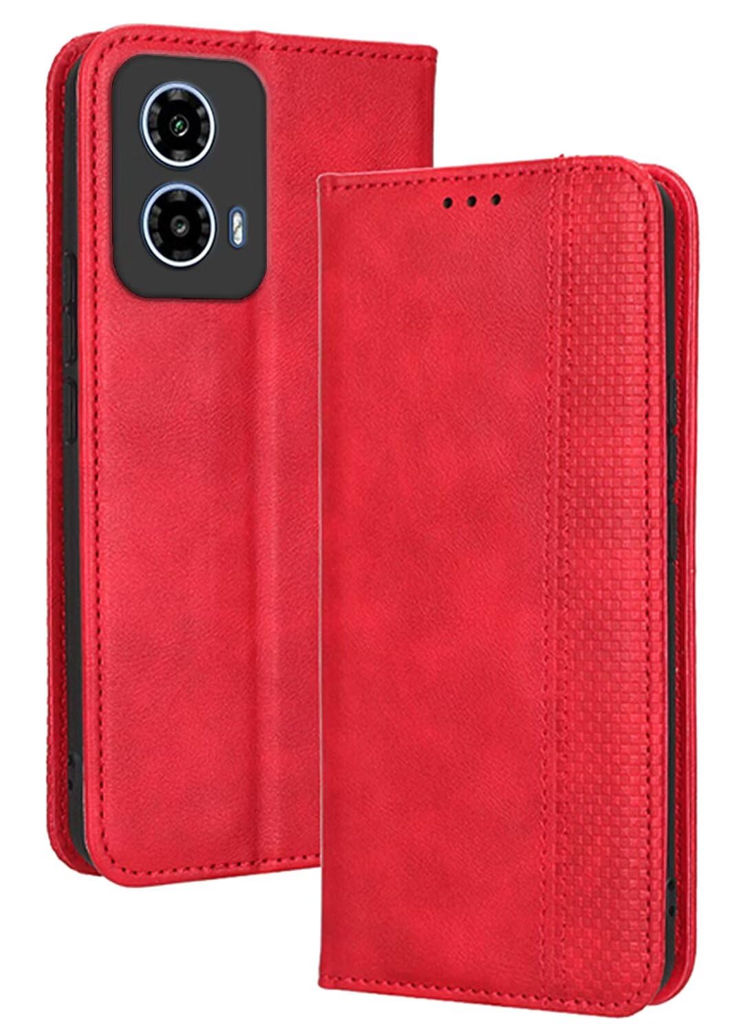 RankOne Brieftaschen-Etui für Motorola Moto G34 (6.5""Inches) , Magnetische Flip-Lederhülle Rot