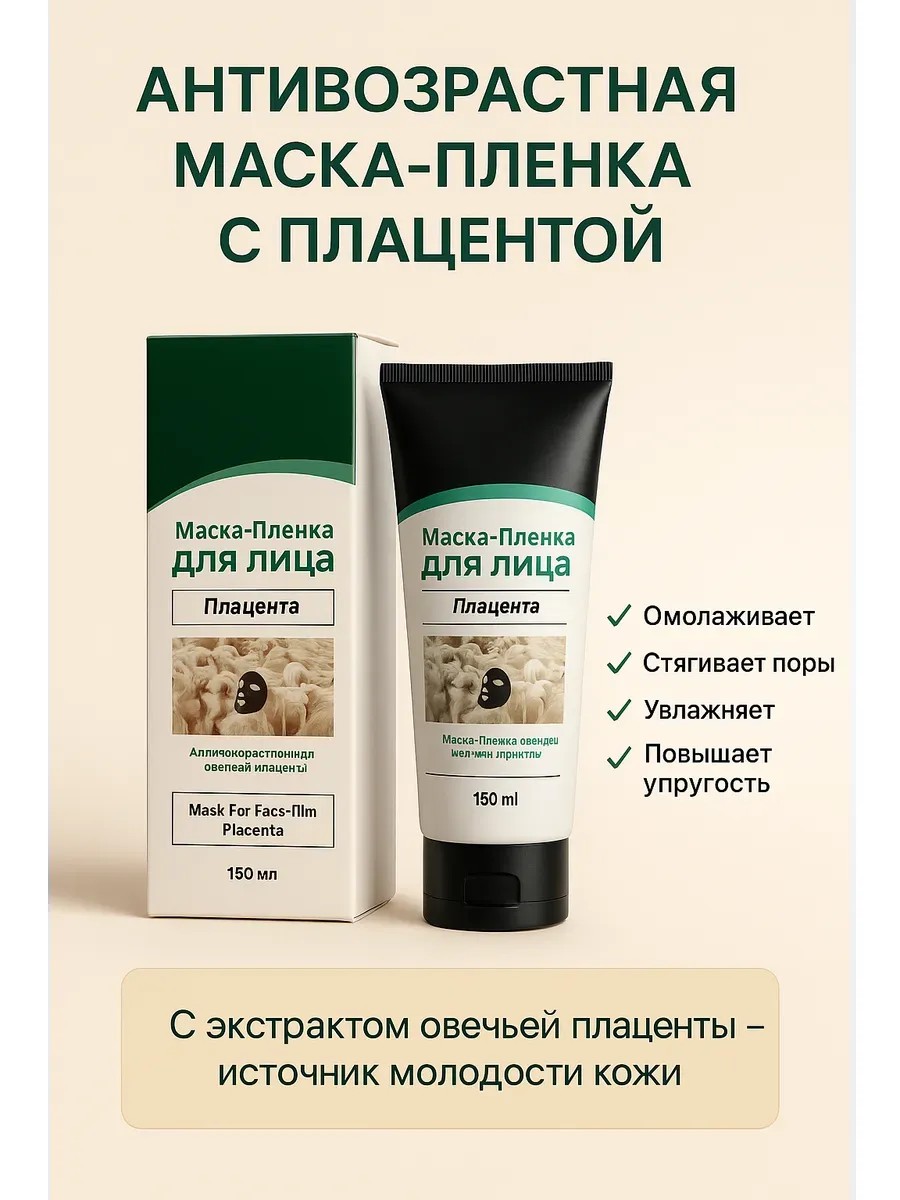 Забудьте о тусклой коже и выраженных морщинах — пришло время для настоящего антивозрастного ухода. Маска-плёнка с овечьей плацентой создана для тех, кто хочет омолодить кожу, вернуть ей упругость, свежесть и чистоту, объединив лифтинг и глубокое очищение в одном средстве. Эта антивозрастная маска-плёнка для лица эффективно борется с чёрными точками, расширенными порами и возрастными изменениями, оставляя кожу гладкой, сияющей и подтянутой уже после первого применения.