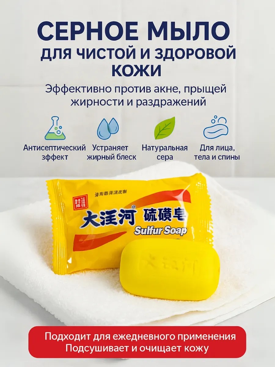 Если вы ищете надежное и проверенное мыло для лица и тела от прыщей, антисептическое мыло для подростков, или просто хотите включить в уход эффективный очищающий продукт, то китайское серное мыло Sulfur Soap — ваш идеальный выбор.