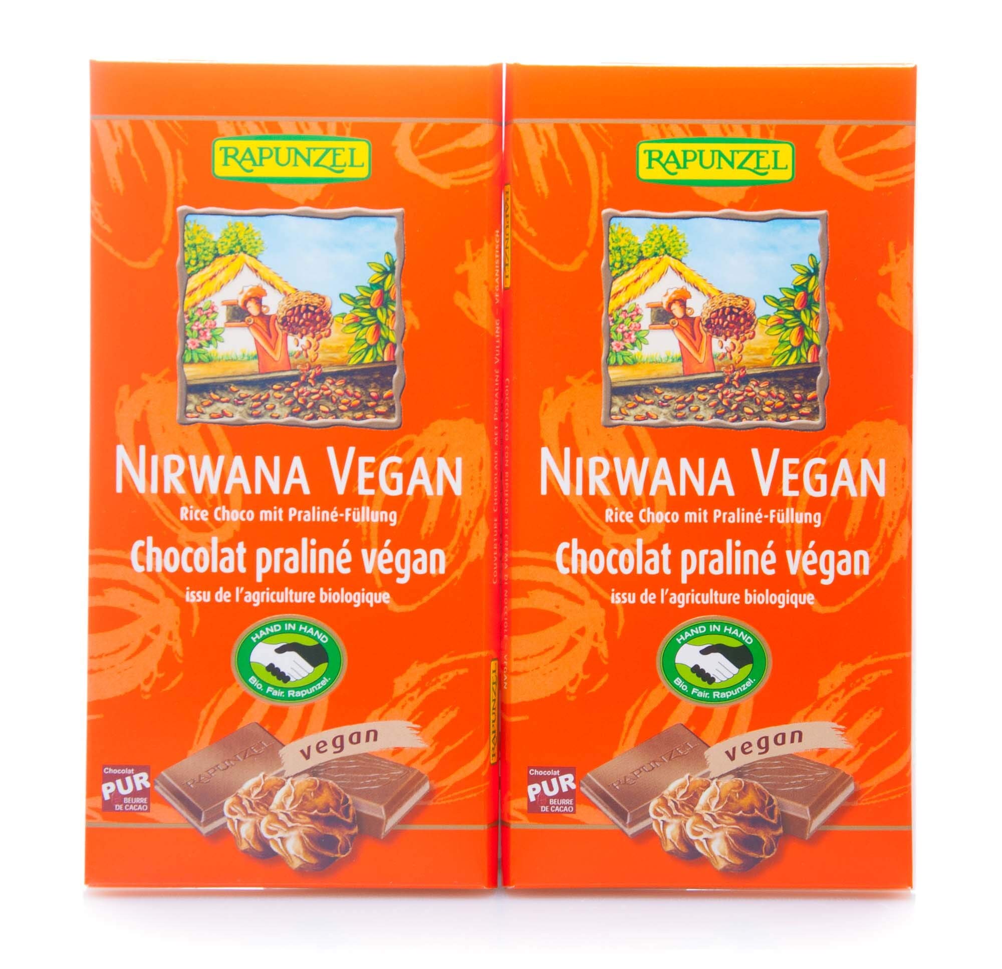 Taste: Storage and use: Please store in a cool, dry place. Processing: Nirwana Vegan is the chocolate for all lovers and contains no milk powder. The fine, elegant praline filling melts delicately on the tongue. Rapunzel chocolate stands for superior quality according to the manufacturer's Swiss tradition, combined with precious, fair-trade ingredients from organic farming. Intense conching, along with precious raw materials, is the true secret to the genuine pleasure of chocolate. Thanks to the concher's art, the initially hidden richness of the cocoa aromas develops step by step until it reaches its full potential. At the same time, this results in perfect smoothness and an incomparable melt-in-your-mouth texture. Certification en EU Organic Label Contents: Nuts, Hazelnuts May contain: Soy, Milk, Lactose Not included (not tested): Cereals containing gluten, Wheat, Khorasan Wheat, Spelt, Rye, Barley, Oats, Crustaceans, Eggs, Fish, Walnuts, Cashews, Pecans, Paranus sesame, Pistachios, Macadamia Nuts, Celery, Mustard, Sesame, Sulfites, Lupin, Molluscs INGREDIENTS Whole Cane Sugar, Cane Sugar, HAZELNUTS 21.00 , Cocoa Butter, Cocoa Mass, Rice Powder 7.00 , Cocoa Powder, Sea Salt, Emulsifier: Sunflower Lecithin, Bourbon Vanilla Contains the following allergens: NutsRapunzel Chocolat Nirwana végétalien bio avec remplissage chocolaté HIH (2 x 100 g) 100 g (2 Pack)DESCRIPTION DU PRODUIT DESCRIPTION DU PRODUIT Goût : Conservation et utilisation : veuillez conserver au frais et au sec. Traitement : Nirwana Vegan est le chocolat pour tous les amateurs et ne contient pas de lait en poudre. Le remplissage fin et élégant du praliné fond délicatement sur la langue. Le chocolat Rapunzel est synonyme de qualité supérieure selon la tradition suisse du fabricant associé à de précieux ingrédients issus du commerce équitable issu de l'agriculture biologique. Le conchage intense est, en plus des matières premières précieuses, le véritable secret du vrai plaisir du chocolat. Grâce à l'art du concher, la richesse initialement cachée des arômes de cacao se développe étape par étape jusqu'à son plein développement. En même temps, il en résulte une finesse parfaite et une fusion incomparable. Certification en Label EU Bio Contenu : fruits à coque, noisette Peut contenir : soja, lait, lactose Non inclus (non testé) : céréales contenant du gluten, blé, khorasan_blé, épeautre, seigle, orge, avoine, crustacés, œufs, poisson, noix, noix, noix de cajou, pecannesse, paranuesse, pistache, macadamia, céleri, moutarde, sésame, sulfite, lupin, mollusques INGRÉDIENTS Sucre de canne entière, sucre de canne, NOISES DE HASE 21,00 , beurre de cacao, pâte de cacao, poudre de riz 7,00 , poudre de cacao, sel de mer, émulsifiant: lécithine de tournesol, vanille de bourbon contient les ingrédients allergènes suivants: fruits à coque