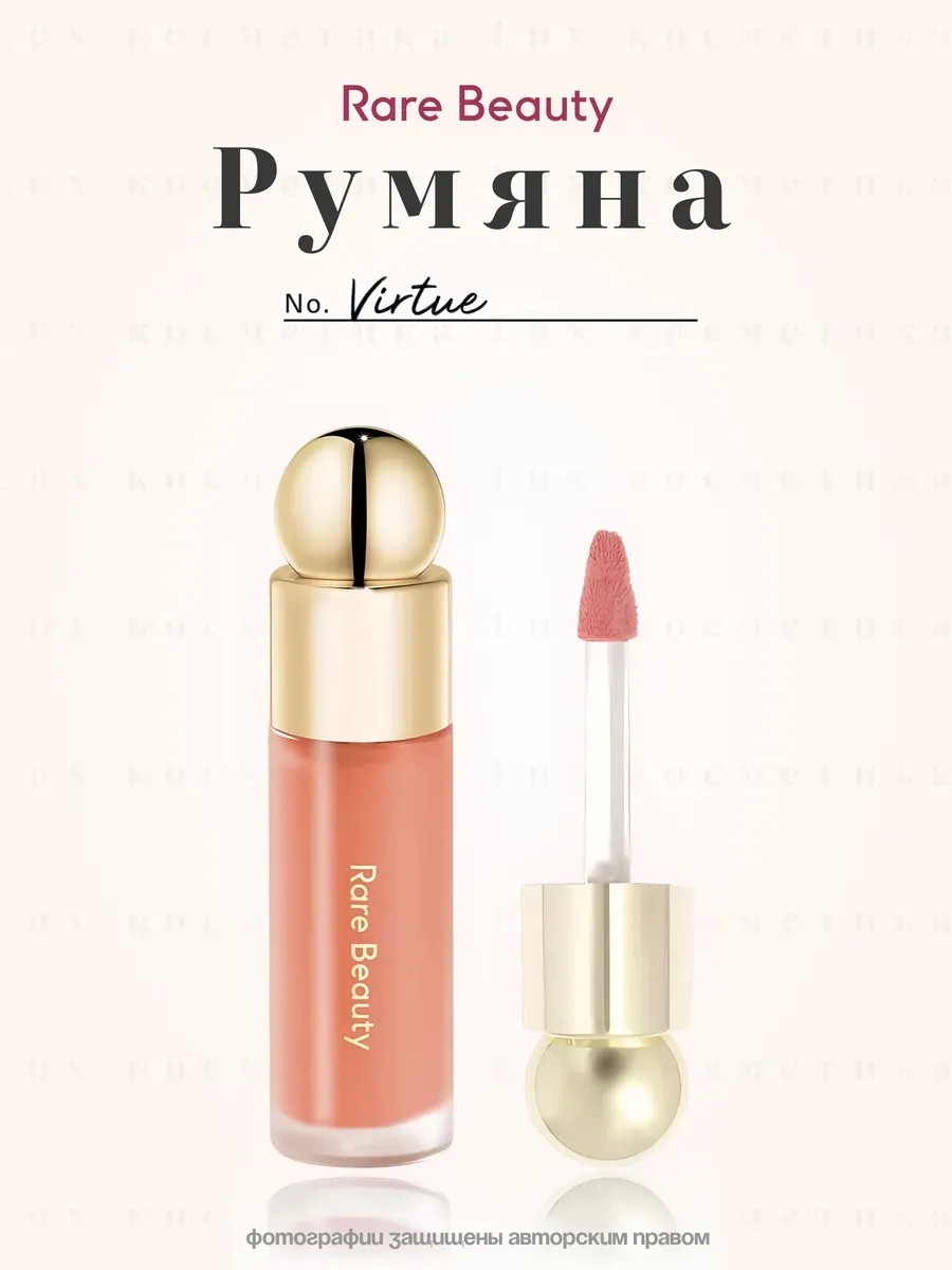 Жидкие румяна Rare Beauty Virtue — это не просто макияж, а способ добавить свежести и молодости вашему лицу. Легкая, невесомая формула сливается с кожей, создавая естественный румянец, как после прогулки на свежем воздухе.