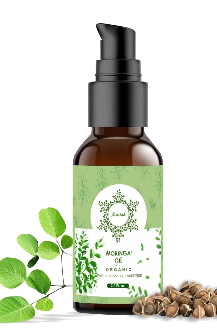 Raslok 100% Pure Wood Pressed Moringa Oil for Face Hair and Dry Skin | Origin Moringa Oleifera Extract | Lightweight Face Oil Natural Moisturizer 2 fl. oz.
