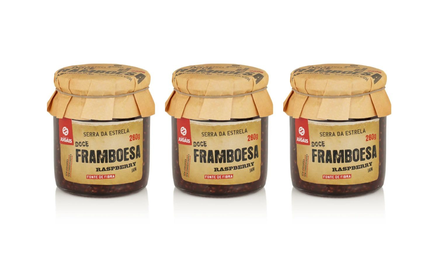 Raspberry Jam - Set of 3 Jars - Without Colorings or Preservatives - Of Portuguese Origin Breakfast is the most important meal of the day, just like snacks, aperitifs or desserts. Add the most intense and authentic flavor of fresh fruit to your moments. Discover our natural jams prepared according to traditional recipes and processes that respect the environment. Enjoy the most intense raspberry flavor, coming from our Serra da Estrela fields. This jam contains no preservatives or artificial colors and also retains its freshest and sweetest flavor. Add it to your cookies or cakes or enjoy it with cheese. Don't miss it! Ingredients: Raspberry (54.4 ), sugar and fruit pectin. This is an ideal product to provide you with an extra dose of energy to face your daily activities with determination. About Us: The journey of Quinta de Jugais stems from our passion for the purest flavors of the Serra da Estrela. That's why we work to create natural jams with the most authentic taste of the fresh fruits we grow ourselves. A naturally delicious choice!ABOUT US: Quinta de Jugais' journey is born from our passion for the purest flavors of Serra da Estrela. That's why we work to create natural jams with the most authentic flavor of the fresh fruits we grow ourselves. We A naturally delicious choice!. PRODUCTS OF PORTUGUESE ORIGIN: Our products are born from our love for our region, Serra da Estrela, a natural space with a unique culture, landscapes, and flavors that are a symbol and an essential part of our country, Portugal. FLAVOR OF GENERATIONS: Our jams are made according to traditional recipes that allow us to preserve the most authentic and pure flavors of our region. In addition, our production is respectful of the ingredients we use and our planet. NATURAL INGREDIENTS: This jam is made with raspberry, sugar, and fruit pectin. Our jams contain no artificial colors or preservatives, all with the aim of obtaining a nutritious, natural, and tasty product. It may contain traces of nuts (walnuts, almonds, and hazelnuts) and sulfites. RASPBERRY JAM: Enjoy a delicious snack for breakfast, afternoon tea, aperitifs, or desserts with this jam that retains its sweetest and freshest flavor. Coming directly from our Serra da Estrela plantations, it's the ideal product to sweeten your moments and give you an extra dose of energy every day. Confiture de Framboises - Lot de 3 Pots - Sans Colorants ni Conservateurs - D'Origine Portugaise Le petit-déjeuner est le repas le plus important de la journée, tout comme les collations, les apéritifs ou les desserts. Ajoutez la saveur la plus intense et authentique des fruits frais à vos moments. Découvrez nos confitures naturelles préparées selon des recettes et des processus traditionnels respectueux de l'environnement. Appréciez la saveur la plus intense de la framboise, provenant de nos champs de la Serra da Estrela. Cette confiture ne contient ni conservateurs ni colorants artificiels et conserve également sa saveur la plus fraîche et douce. Ajoutez-la à vos biscuits ou à vos gâteaux ou dégustez-la avec du fromage. Ne la manquez pas ! Ingrédients : Framboise (54,4 ), sucre et pectine de fruit. Il s'agit d'un produit idéal pour vous fournir une dose supplémentaire d'énergie pour faire face avec détermination à vos activités quotidiennes. À Propos de Nous : Le voyage de Quinta de Jugais découle de notre passion pour les saveurs les plus pures de la Serra da Estrela. C'est pourquoi nous travaillons à créer des confitures naturelles au goût le plus authentique des fruits frais que nous cultivons nous-mêmes. Un choix naturellement délicieux !À PROPOS DE NOUS : Le voyage de Quinta de Jugais naît de notre passion pour les saveurs les plus pures de Serra da Estrela. C'est pourquoi nous travaillons pour créer des confitures naturelles avec la saveur la plus authentique des fruits frais que nous cultivons nous-mêmes. Nous Un choix naturellement délicieux!. PRODUITS D'ORIGINE PORTUGAISE : Nos produits sont nés de notre amour pour notre région, Serra da Estrela, un espace naturel avec une culture, des paysages et des saveurs uniques qui sont un symbole et une partie essentielle de notre pays, le Portugal. SAVEUR DES GÉNÉRATIONS : Nos confitures sont élaborées selon des recettes traditionnelles qui nous permettent de préserver les saveurs les plus authentiques et pures de notre région. De plus, notre production est respectueuse des ingrédients que nous utilisons et de notre planète. INGRÉDIENTS NATURELS : Cette confiture est composée de framboise, de sucre et de pectine de fruit. Nos confitures ne contiennent ni colorants ni conservateurs artificiels, le tout dans le but d'obtenir un produit nutritif, naturel et savoureux. Il peut contenir des traces de fruits à coque (noix, amande et noisette) et de sulfites. CONFITURE DE FRAMBOISES : Savourez un délicieux en-cas lors de vos petits déjeuners, goûters, apéritifs ou desserts avec cette confiture qui conserve sa saveur la plus douce et la plus fraîche. Provenant directement de nos plantations de Serra da Estrela, c'est le produit idéal pour adoucir vos moments et vous donner une dose supplémentaire d'énergie au quotidien.