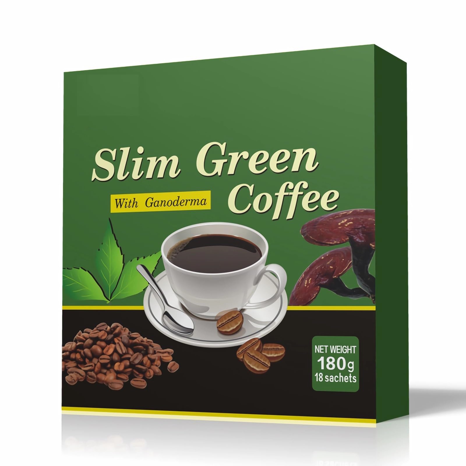 Green Coffee Slimming with Ganoderma - 180g (18 sachets), Natural Weight Management Support Discover a natural approach to weight management with our Green Coffee Slimming with Ganoderma (Reishi mushroom). This unique blend boosts metabolism and provides antioxidant benefits. Each box contains 18 convenient individual sachets for easy preparation. Enjoy a smooth, natural coffee that fits perfectly into your daily wellness routine. Key Features: Green Coffee and Ganoderma Blend Supports Weight Management 18 Individual Sachets Antioxidant Properties Natural Ingredients Ideal for those seeking a natural supplement to support their metabolism. SAFETY WARNING Do not consume if pregnant or allergic to any of the ingredients. Consult a healthcare professional before use if you have any medical conditions or are taking medication. Keep out of reach of children.