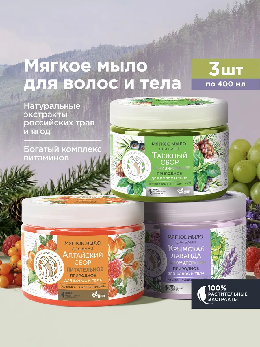 РАССЕЯ Мыло густое для бани для волос и тела натуральное 3 шт