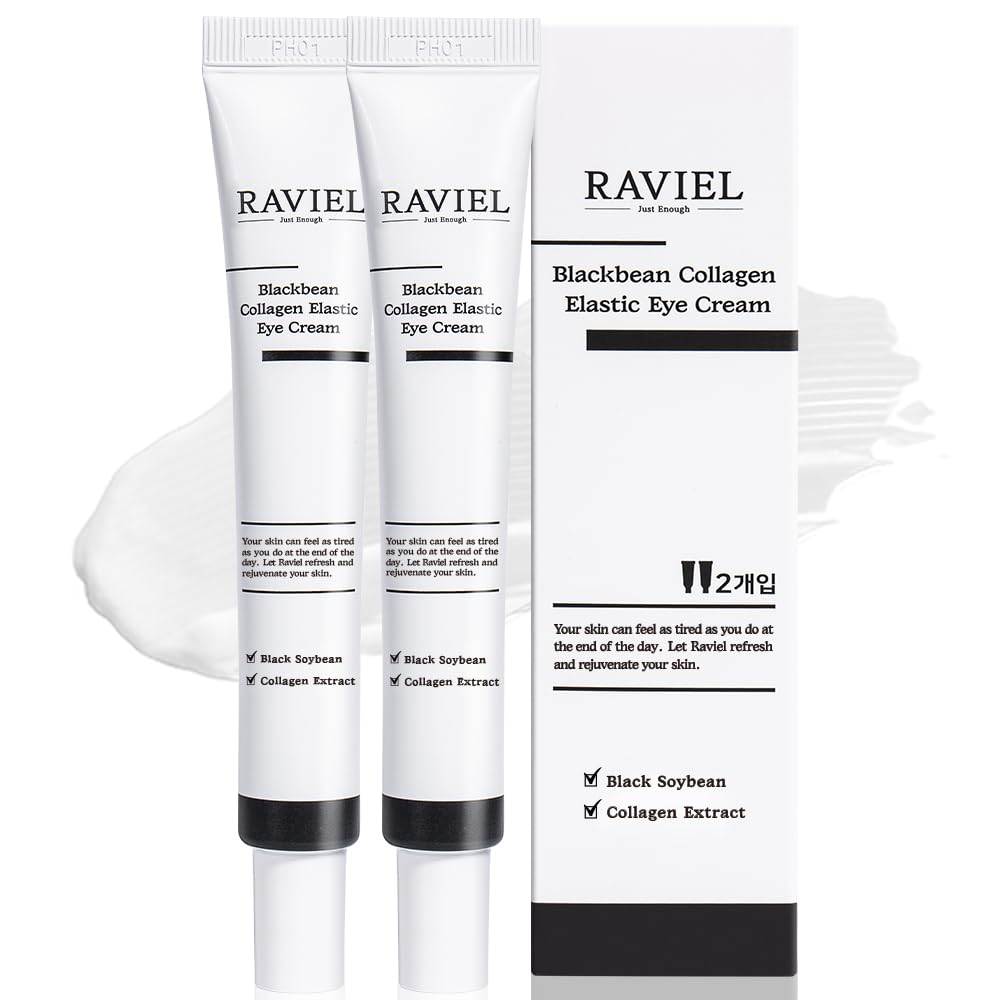 RAVIEL Black Bean Collagen Elastic Eye Cream Set | Brightening & Anti-Wrinkle | Smooth & Fast Absorbing KFDA-Certified | Highly Rated in Korea (0.67 fl oz Pack of 2)