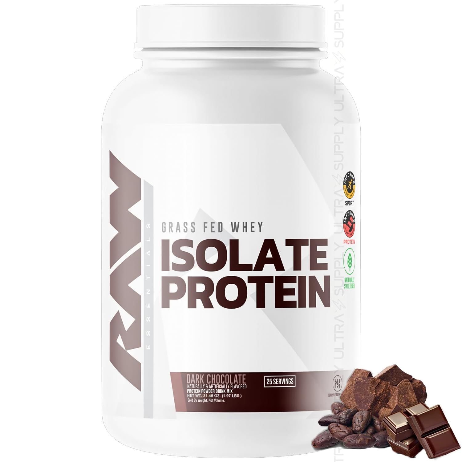 RAW 25g Grass-Fed Whey Isolate Protein Powder Dark Chocolate Flavor 25 Servings