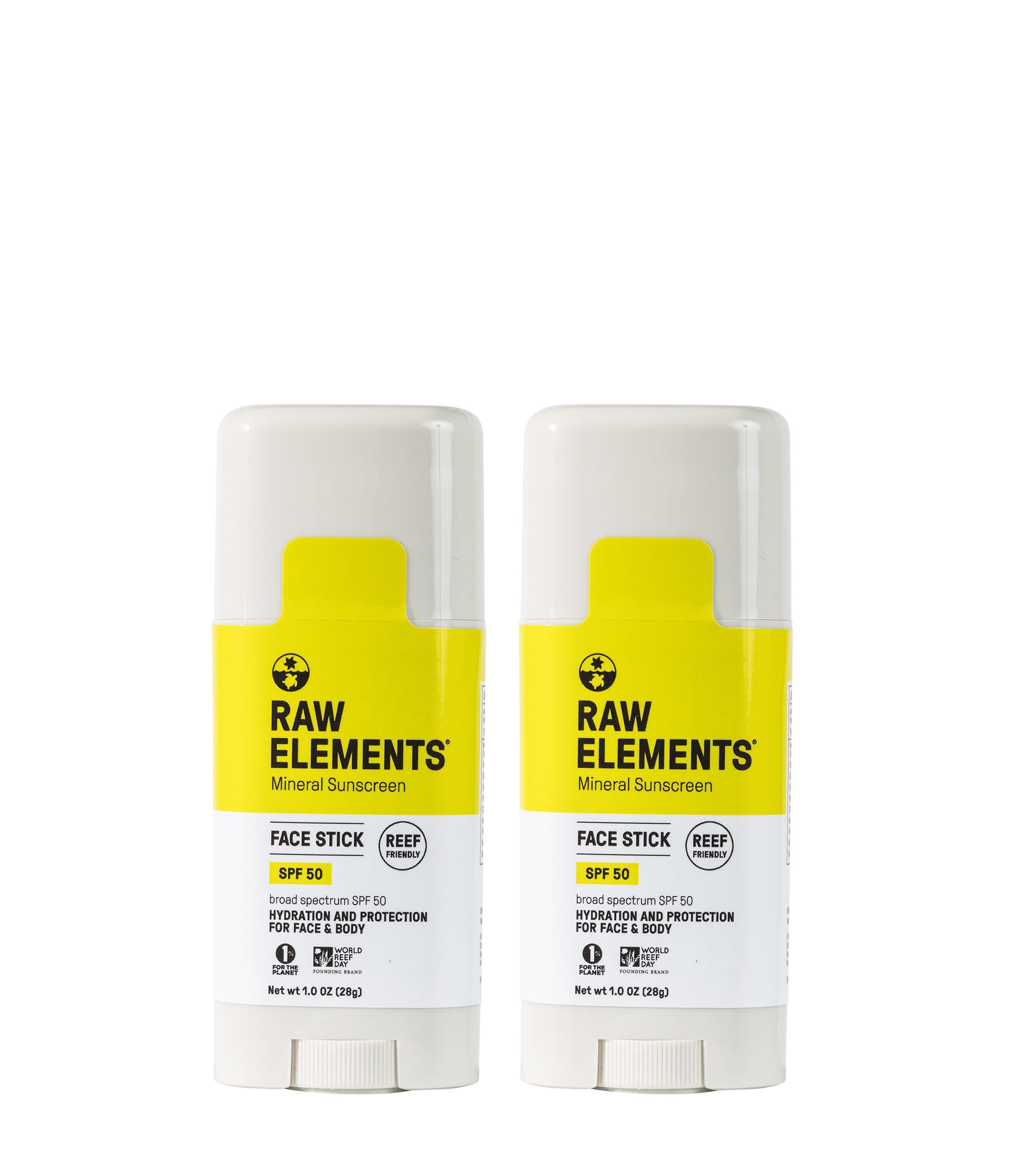 Raw Elements Face Stick SPF 50 All-Natural Mineral Sunscreen - Reef Safe Water Resistant Broad Spectrum UVA/UVB Protection Safe For All Ages Travel Size 1 oz 2PK