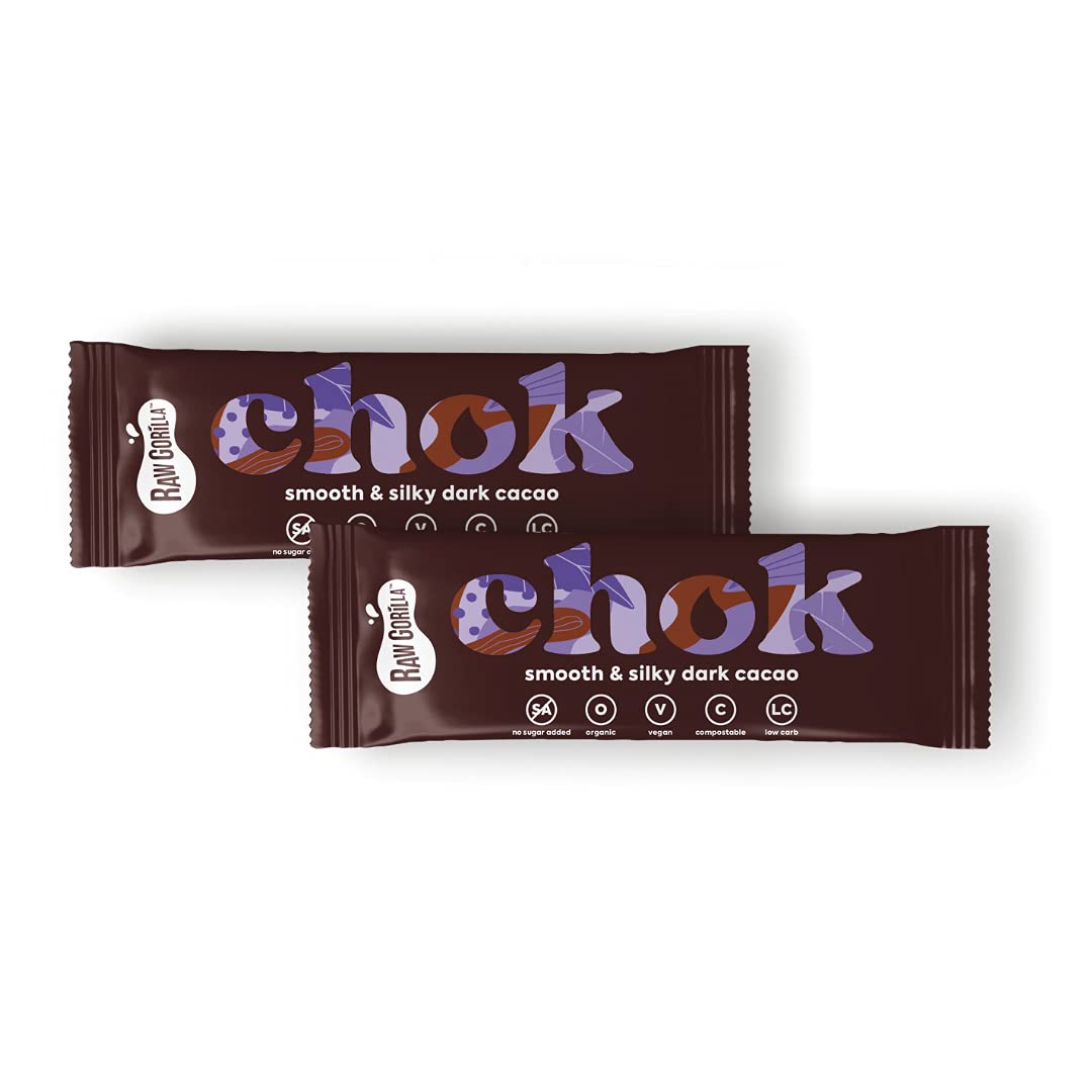 Raw Gorilla Raw Gorilla Chok Smooth Dark Cacao | Pack of 2 | Gluten-Free Snacks | Keto-Friendly Chocolate | No Added Sugar | Vegan Snacks | Organic | Sugar-Free Chocolates | Nut-Free | Healthy Snacks